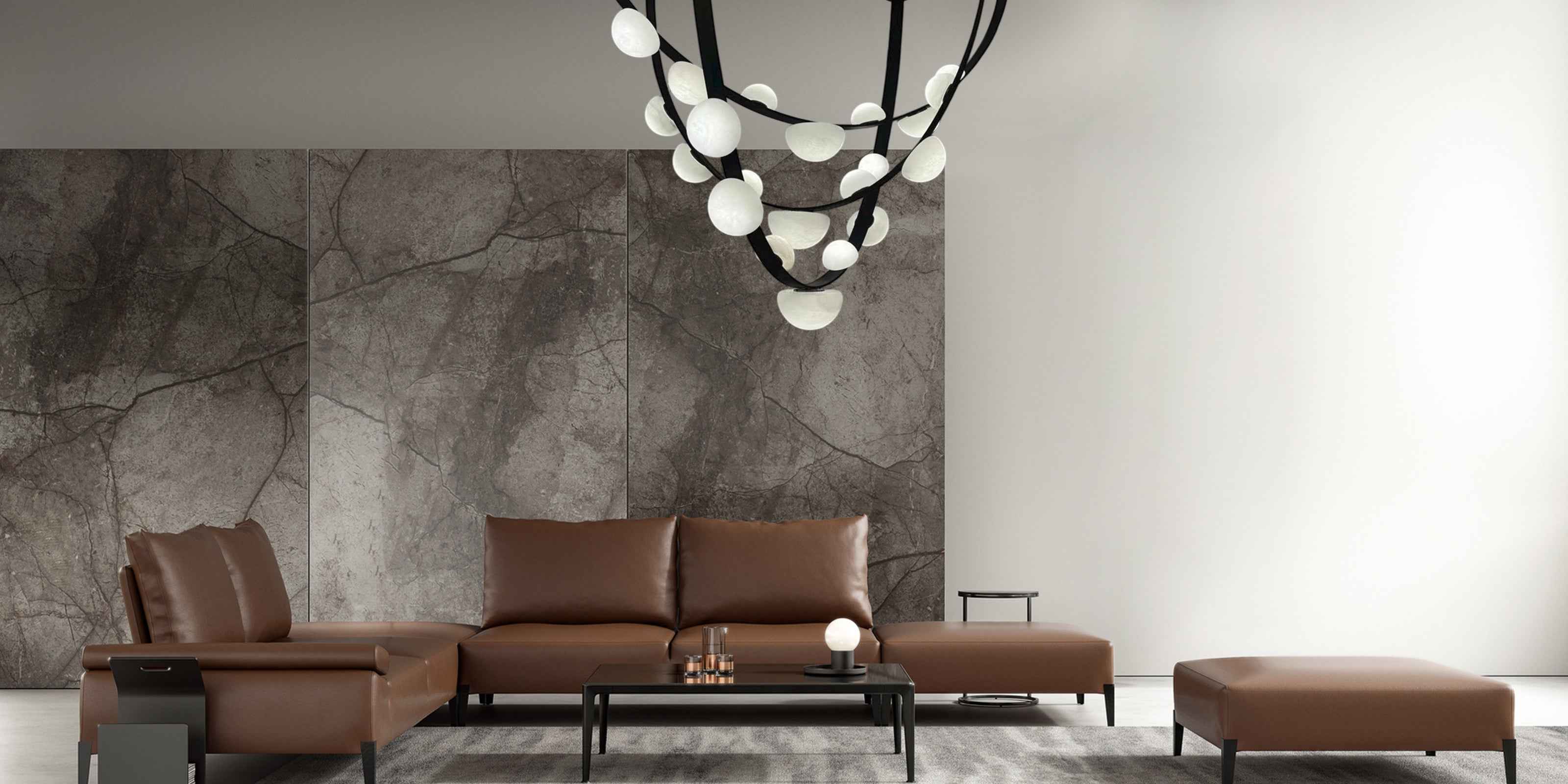 Finish Options : Natural Stone Alabaster | Brown & Black Leather