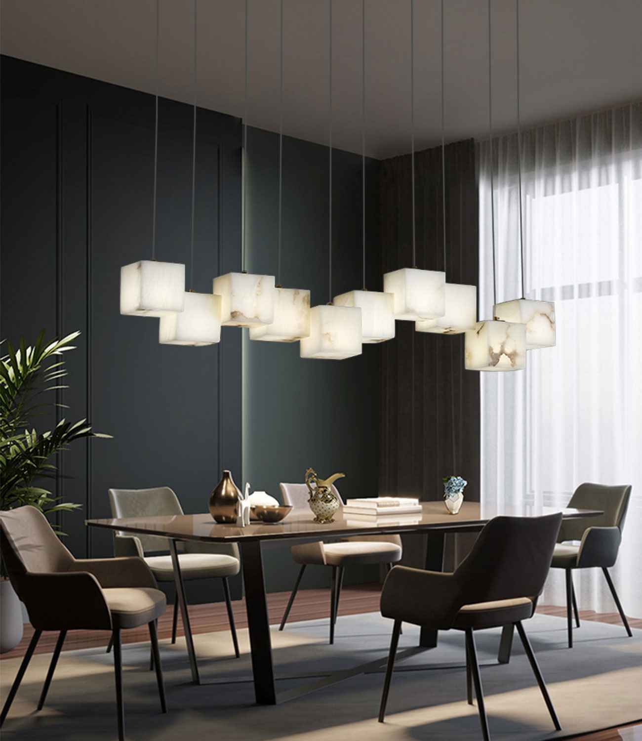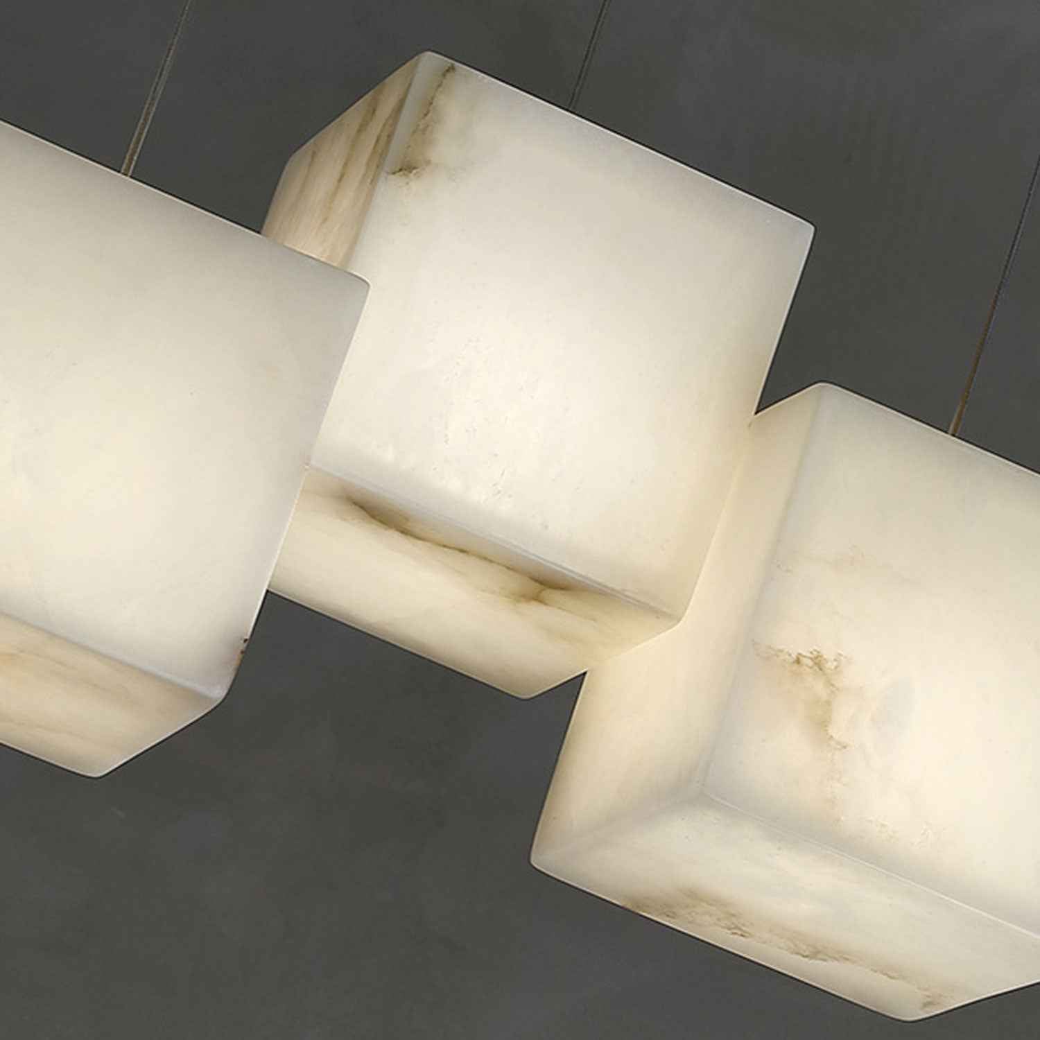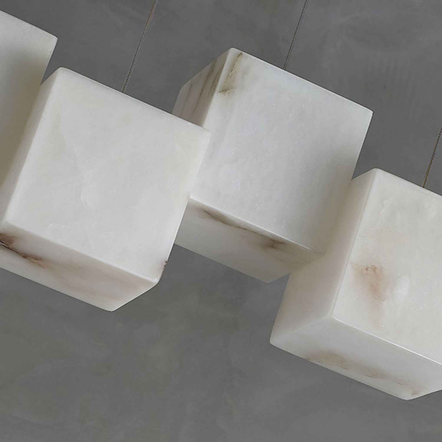 LightsStory Series Geometric Pendant Light | Square Cube Cluster Natural Spanish Alabaster, Natural Stone Texture for Dining Rooms and Modern Living Spaces