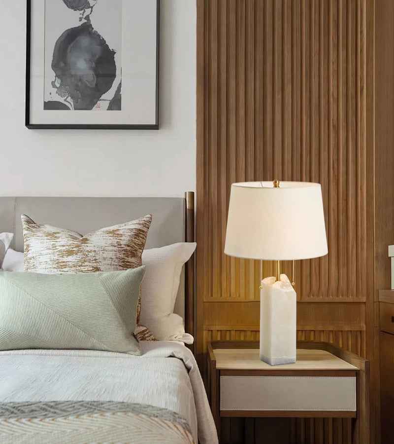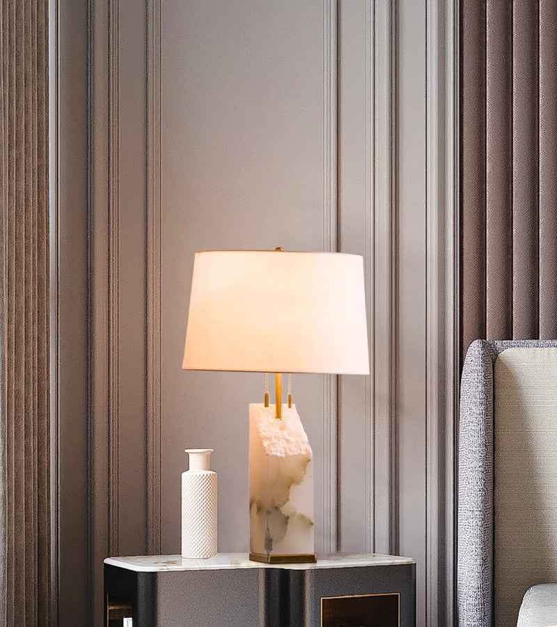 LightsStory Series Geometric Table Lamp | Square Silhouette Raw white alabaster blocks with organic veining, Unpolished stone base with brass accents for Living rooms and bedrooms