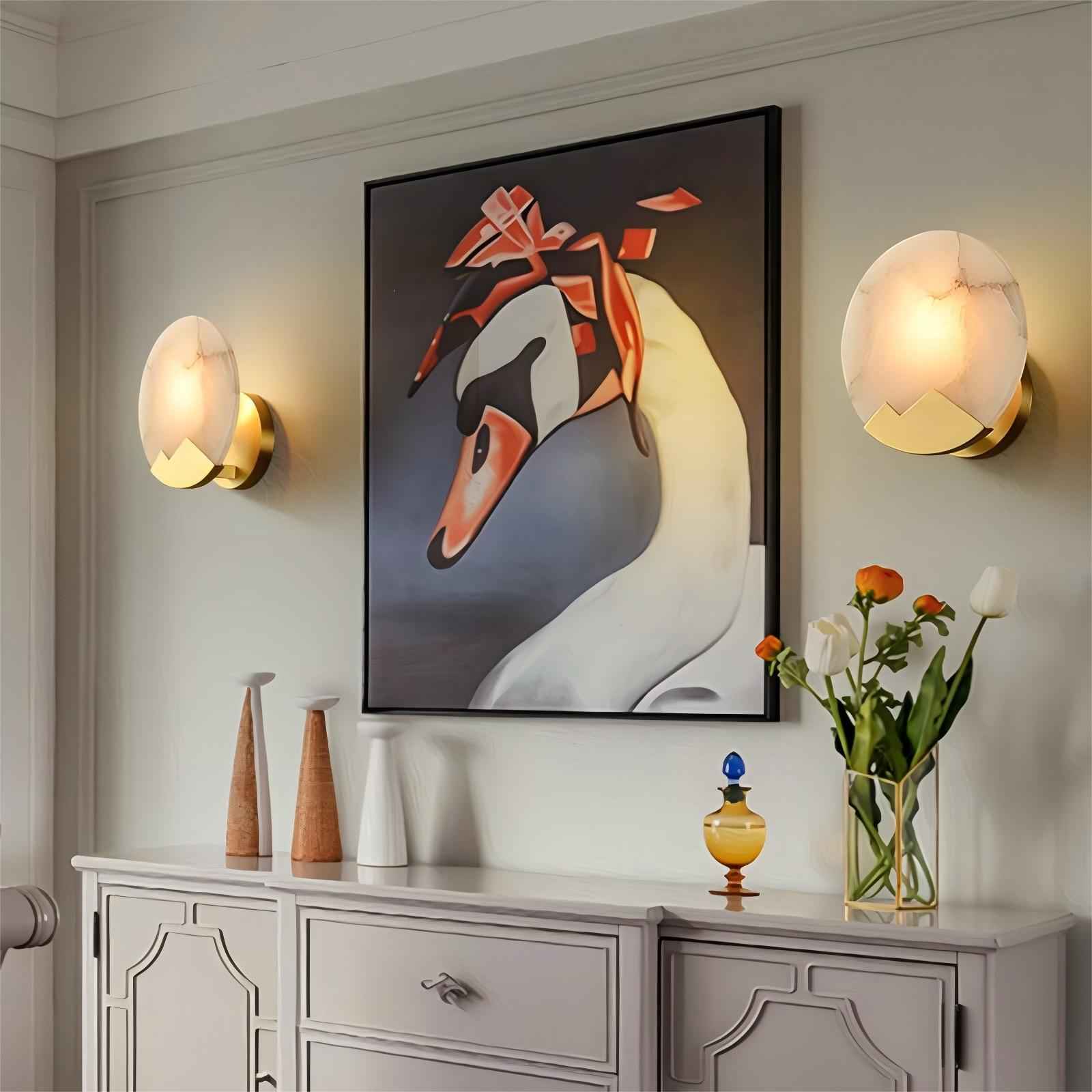 Flush Mounted Alabaster Wall Sconce Lamp
