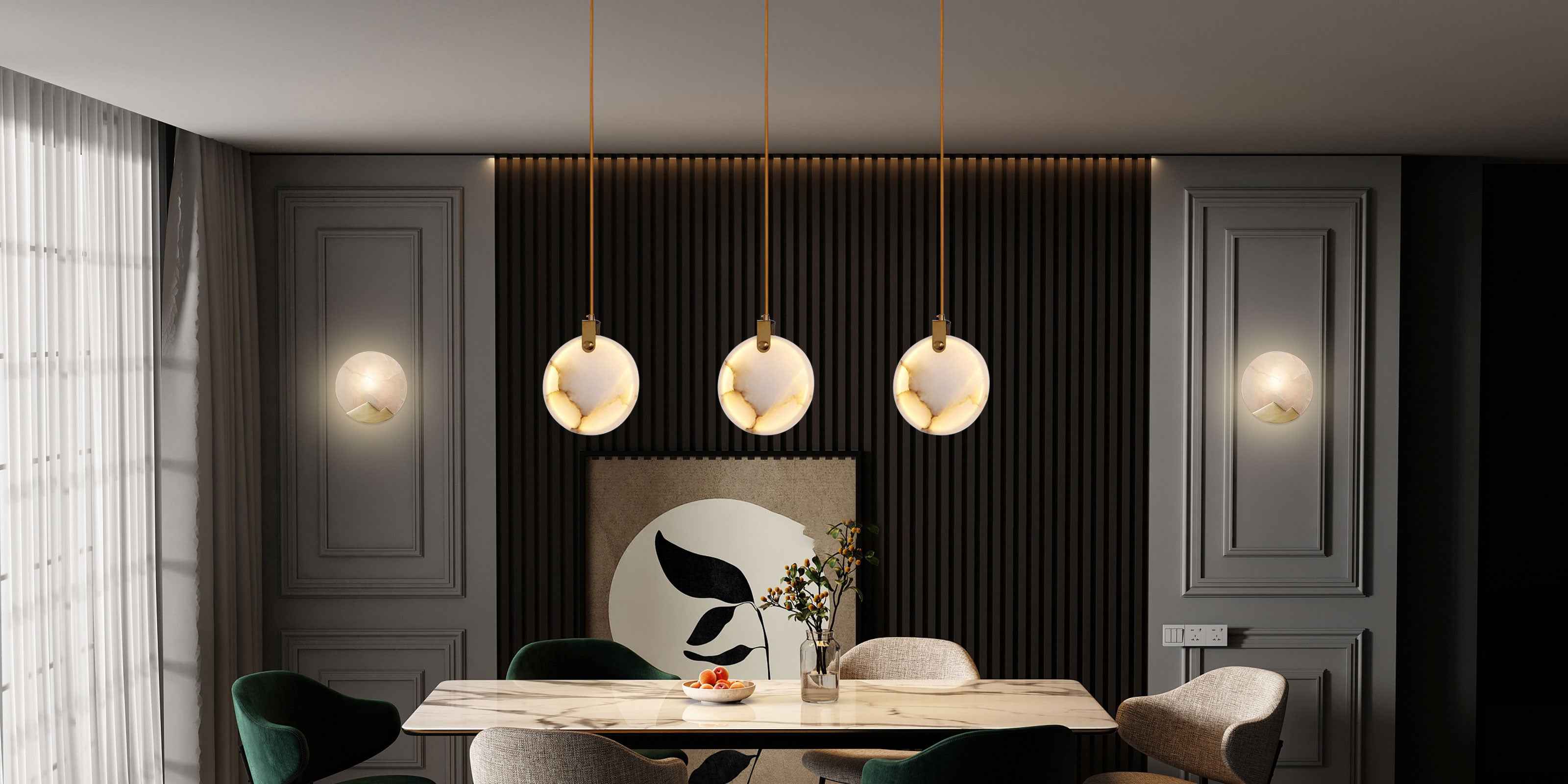 Finish Options: Natural Stone Alabaster | Brass & Black Metal