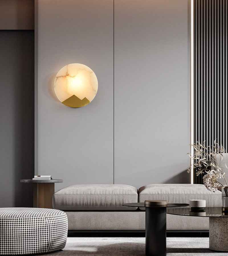 LightsStory Series Geometric Wall Sconce | Mountain-shaped Frame Alabaster marble and brushed brass, Brushed Brass finish for living rooms, bedrooms, hallways, or dining spaces by LightsStory.