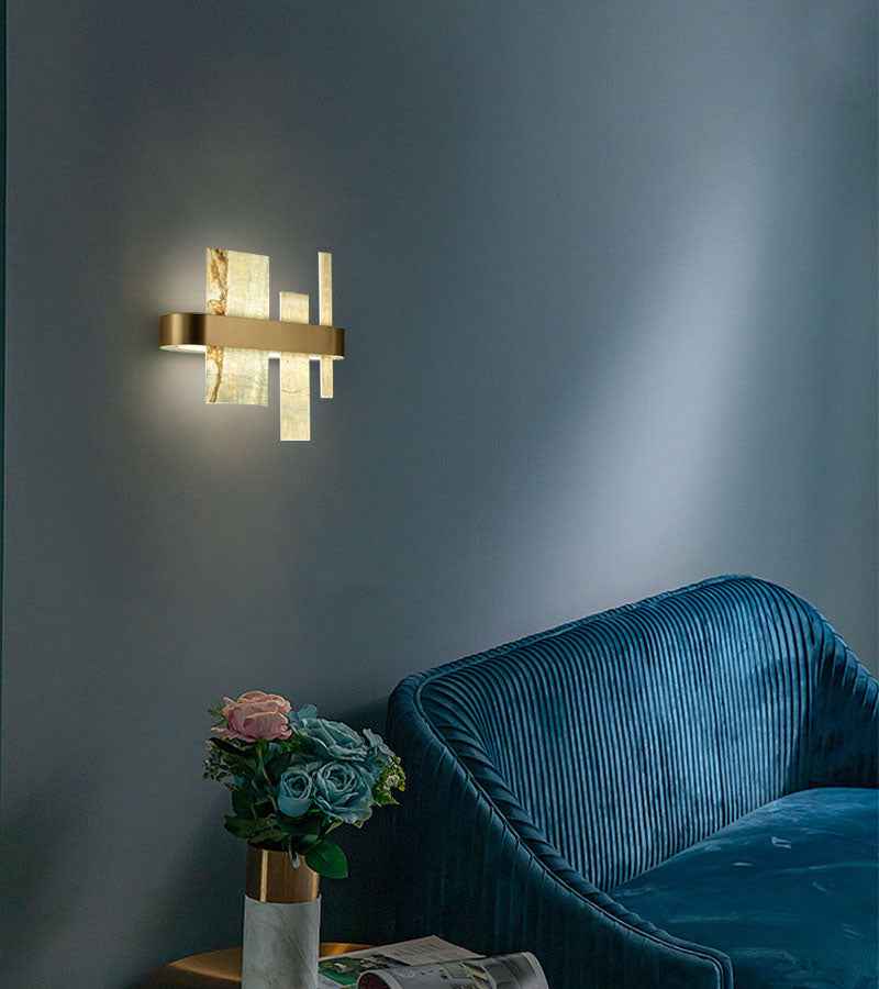 Build-in LED chip, give us the bright and efficient light. The exterior is inlaid with gold stainless steel coating, and the classic tone is not easy to date. The light through the marble is so comfortable to protect our eyes.