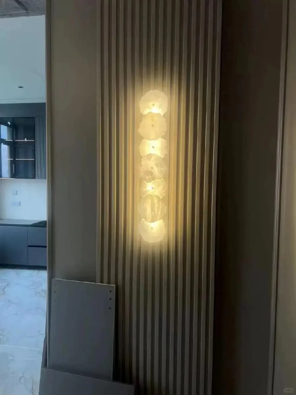 Add a touch of art deco elegance to your home with the White Marble Slice Metal Wall Sconce. This exquisite fixture features random-shaped marble slices, each piece showcasing its own distinct veining and translucence, set against a sleek metal backdrop.