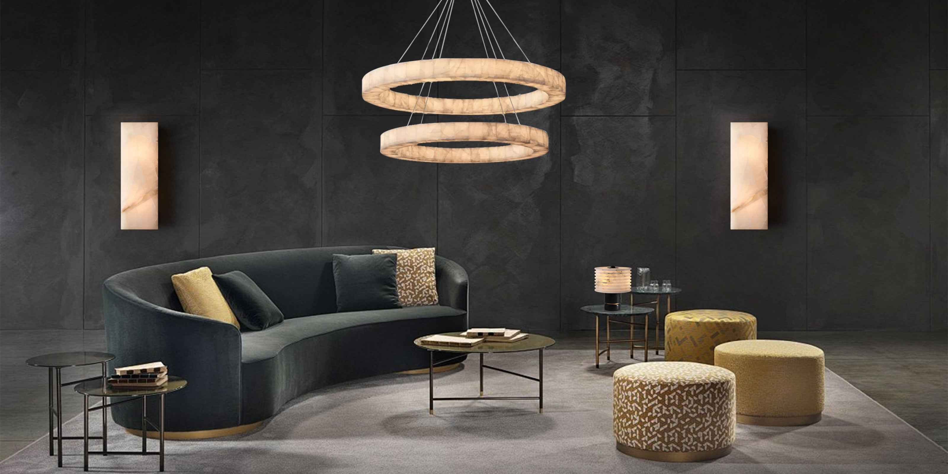 Effortlessly capturing calcite's essence, the Round Chandelier exudes a serene, natural glow.