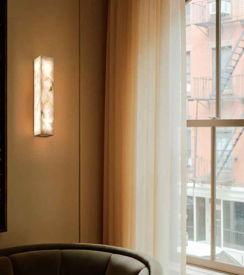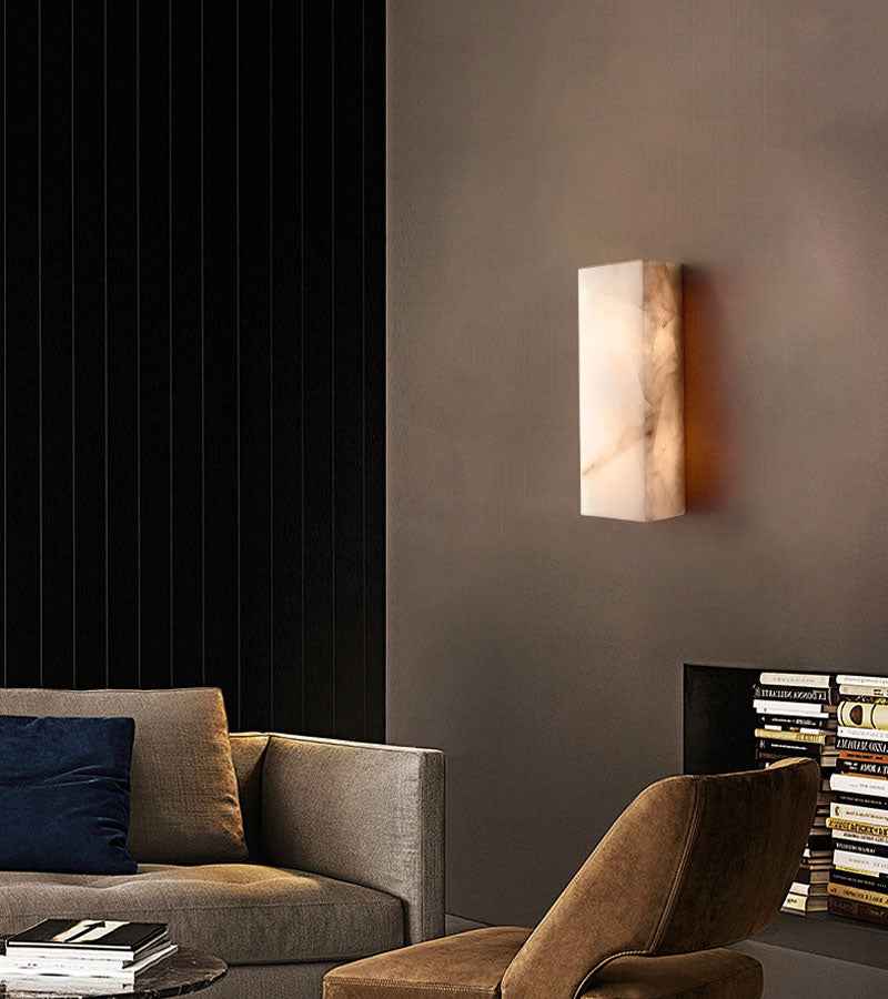 LightsStory Series Geometric Wall Sconce | Square Silhouette Solid Cloud Stone with unique veins and natural texture, Natural Stone finish for Halls, bedrooms, and covered indoor accents