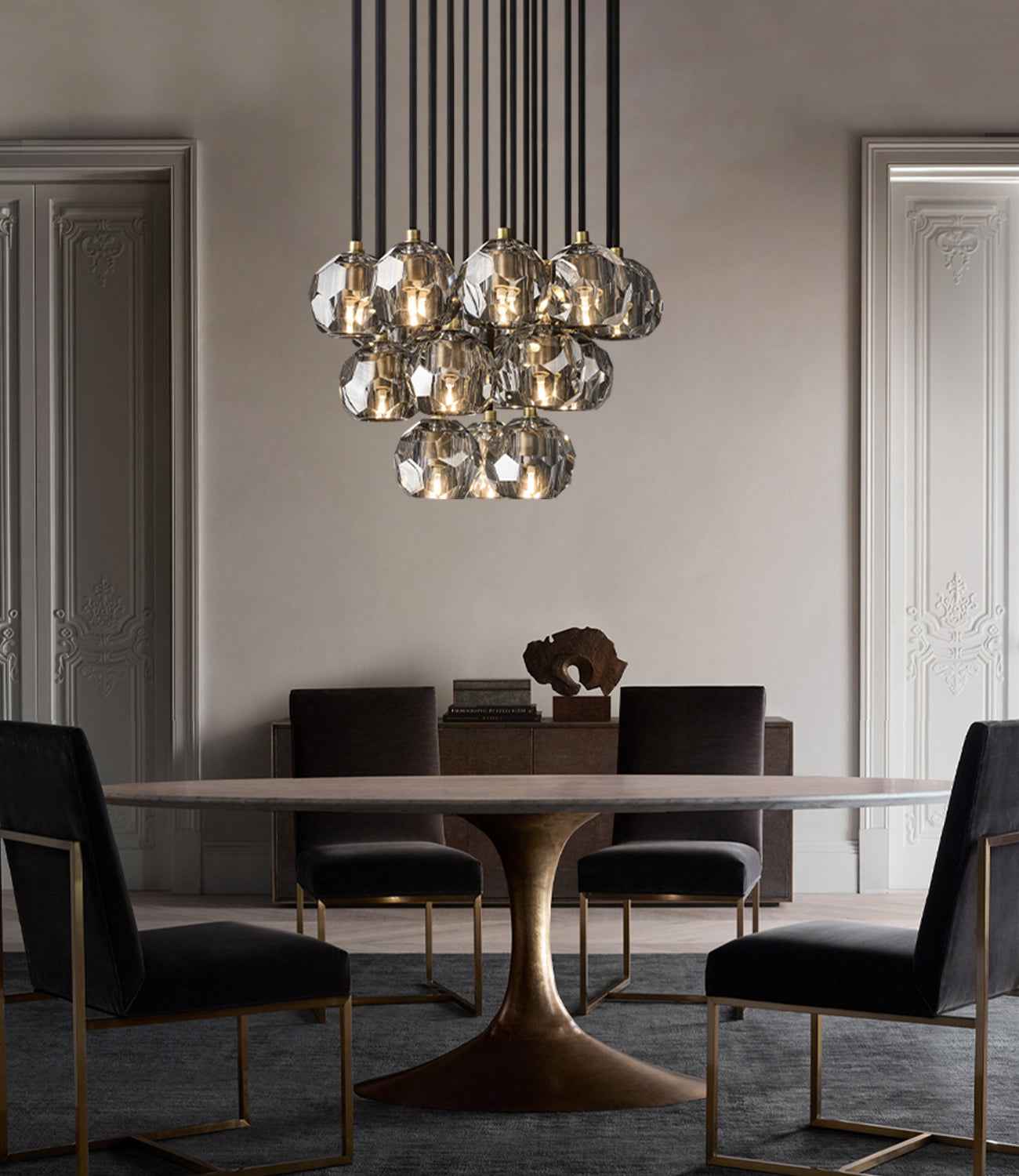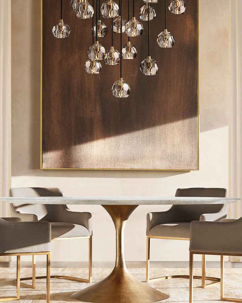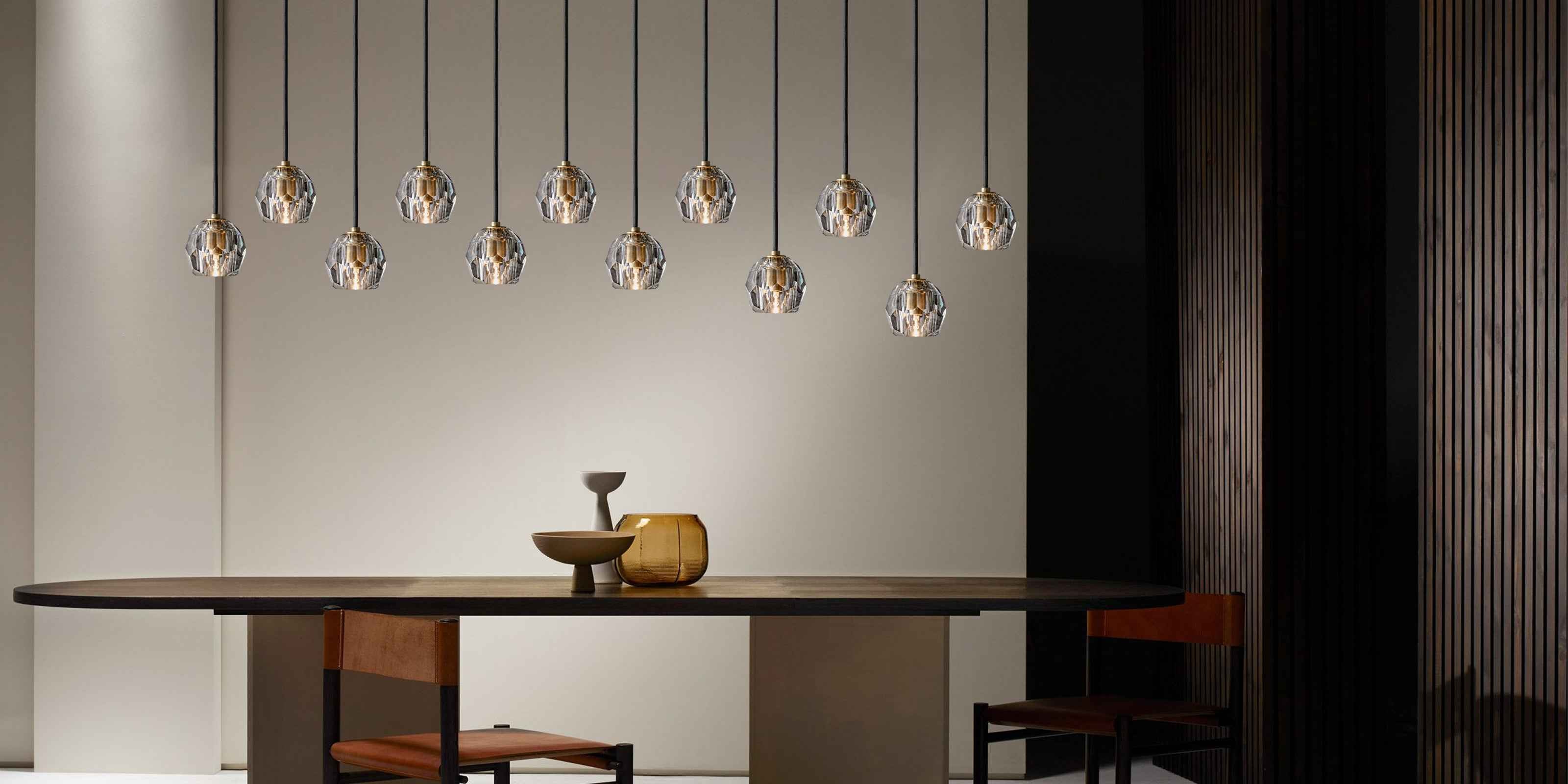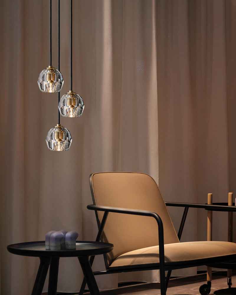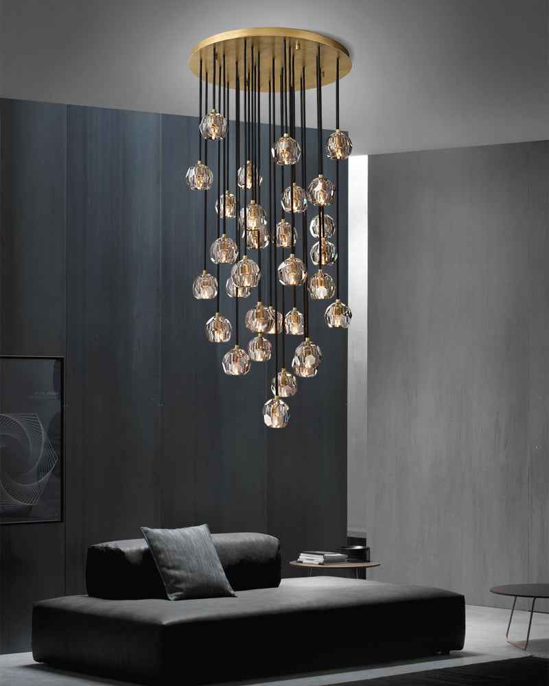 Illuminate your home with our thoughtfully crafted indoor lighting for a touch of modern elegance.The collection crafted of solid brass and crystal glass for luxury materials and superior craftsmanship, each finely faceted sphere is ground and polished by hand to reflect and refract the light.