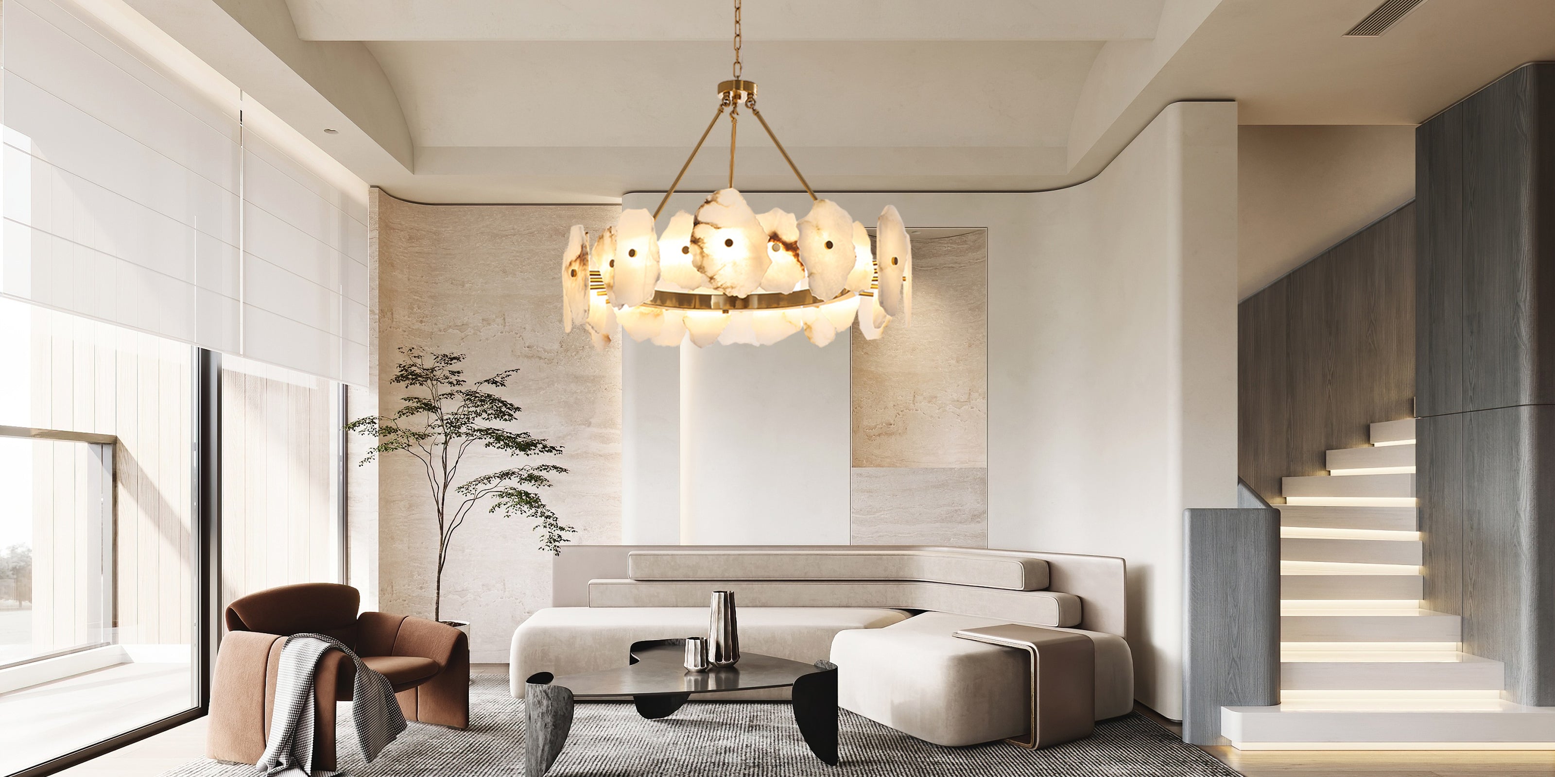 Luxury Irregular White Alabaster Round Chandelier Wide 60/80/100/120CM Brass Frame