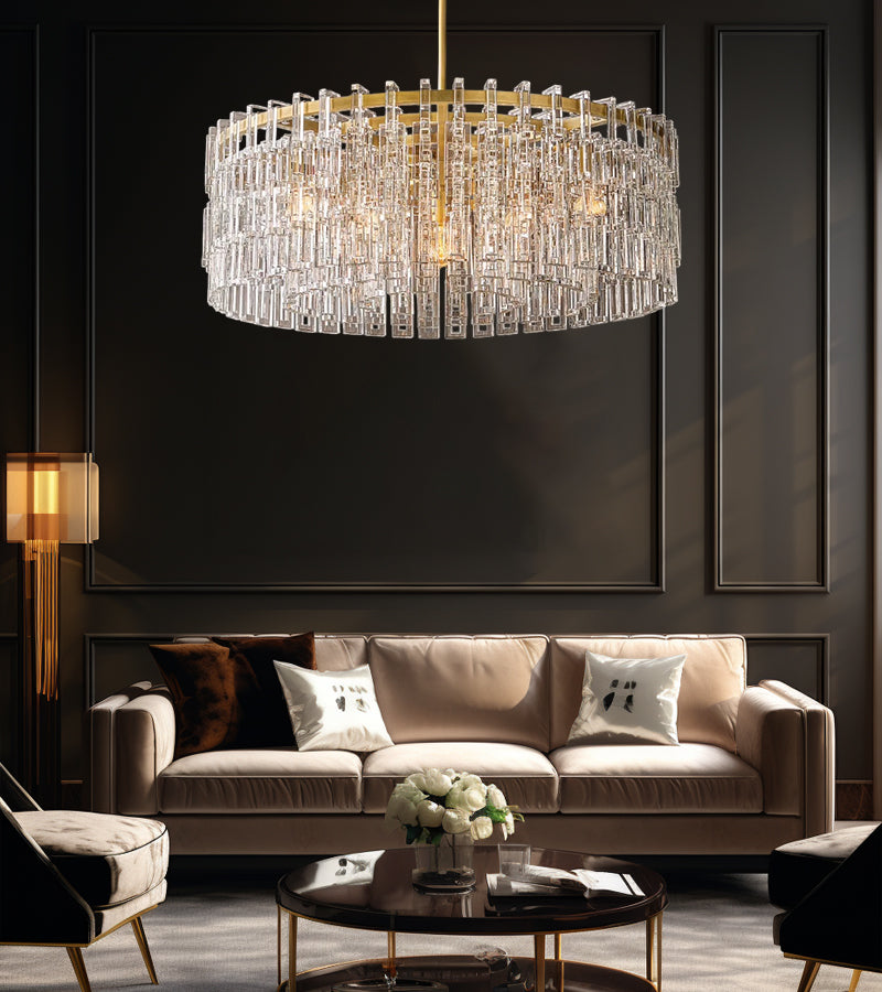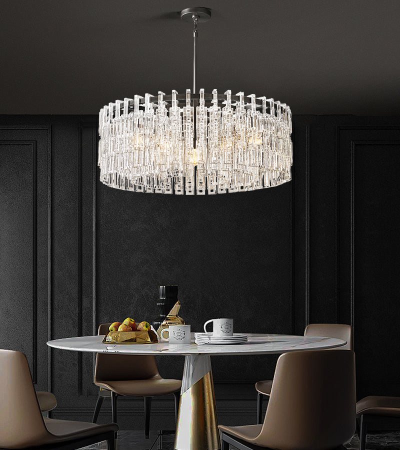 Add sophistication to any room with our rectangle luxury crystal chandeliers. Perfect for dining areas and living rooms, they radiate contemporary elegance.