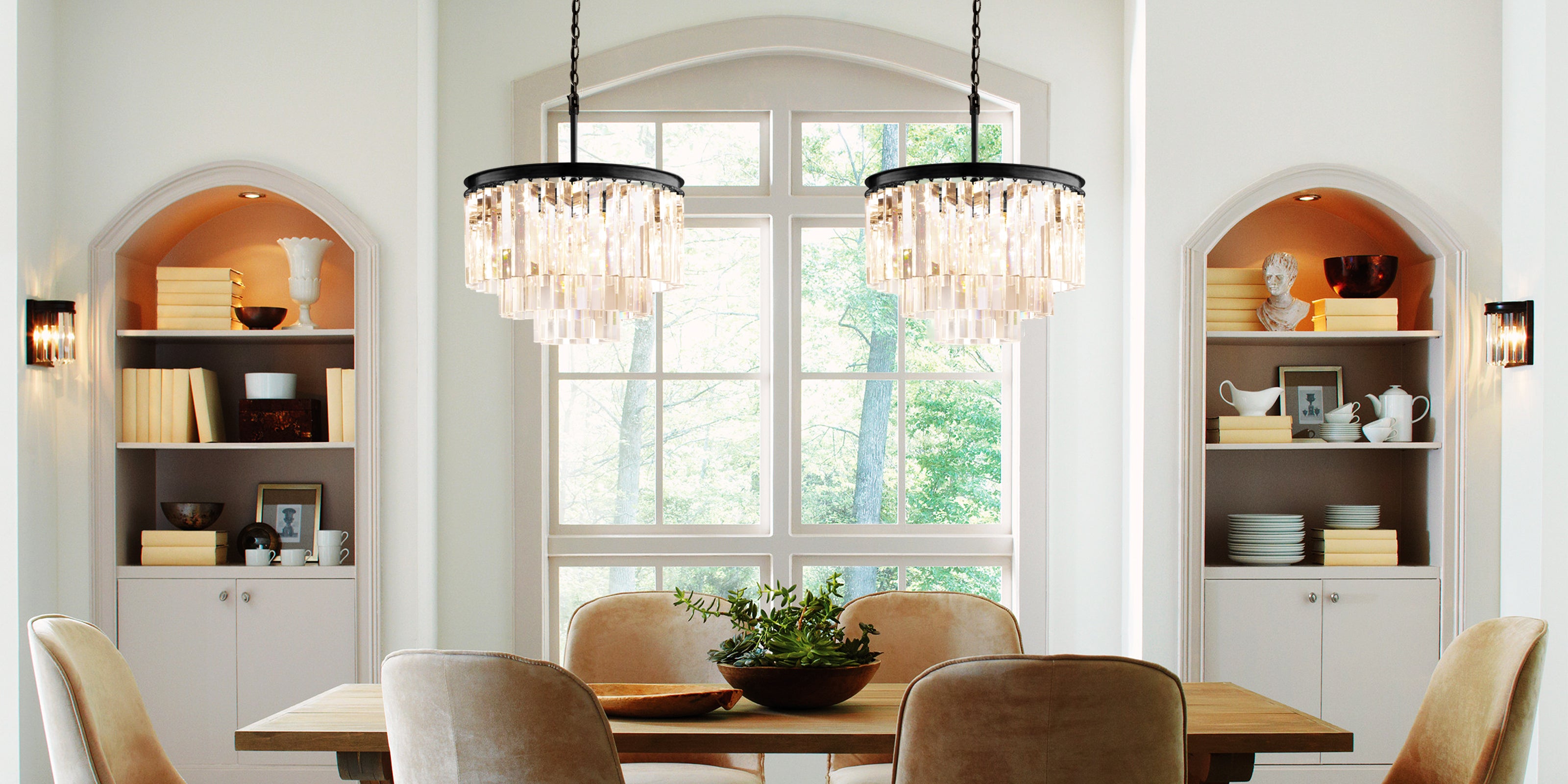 Sleek Black metal accents paired with dazzling clear crystal glass sticks create a minimalist yet eye-catching design. Perfect for entryways, dining rooms, or living areas, this crystal chandelier adds a touch of sophistication to any space.
