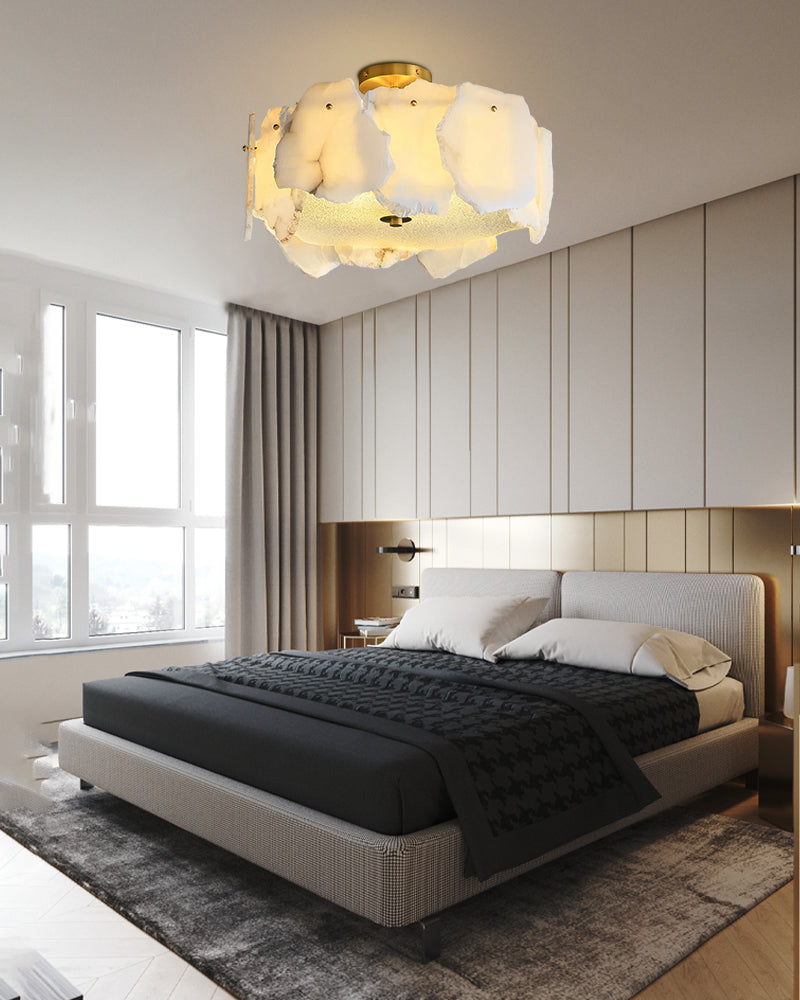 Bring light and style into your home with this beautiful flush mount alabaster ceiling light fixture. It's easy to install and casts a warm, inviting glow to any room. Add a touch of sophistication and charm to your home with this elegant fixture.