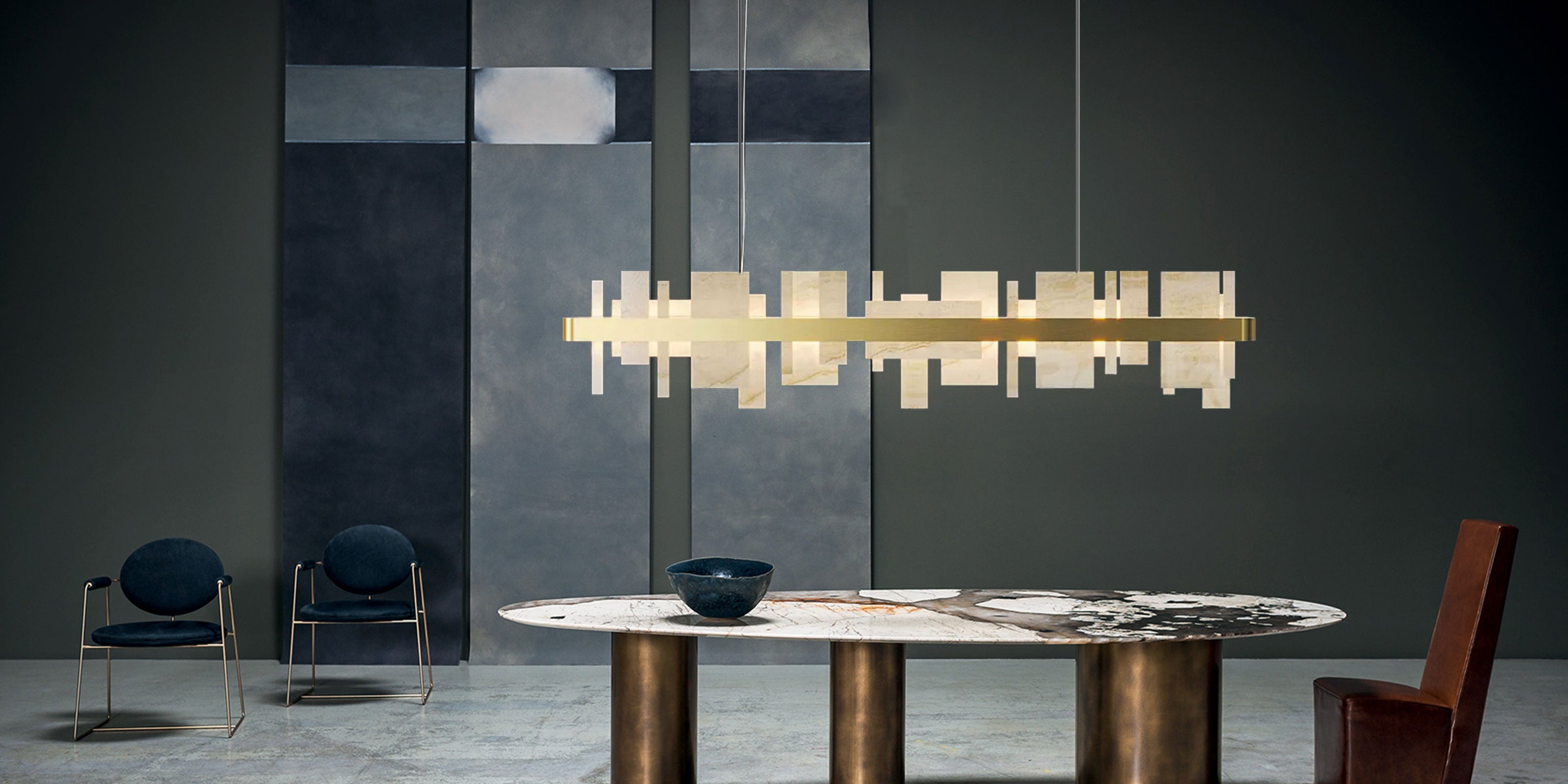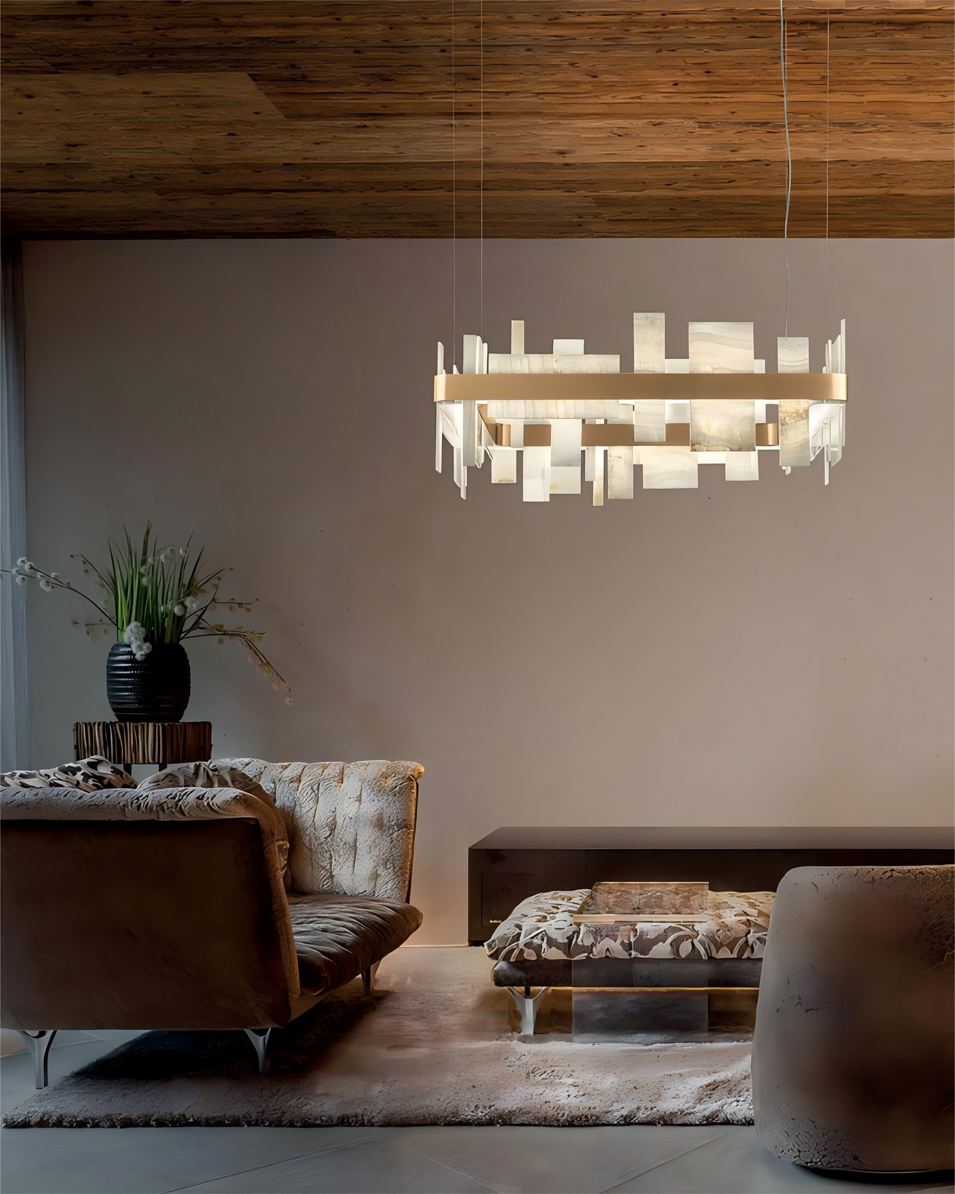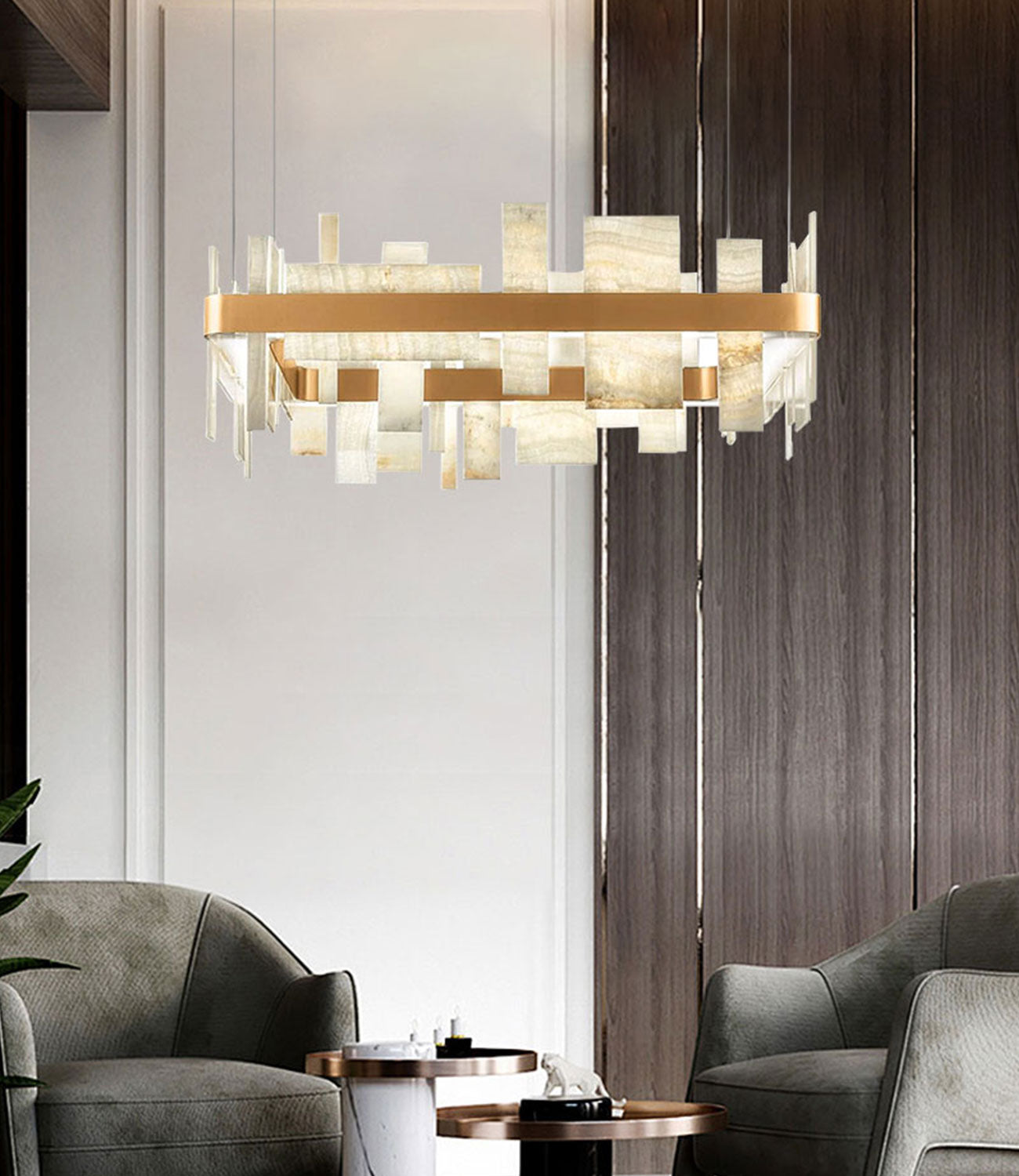 Luxury Marble Slice & Metal Golden Frame Oval Chandeliers | Handcrafted marble
