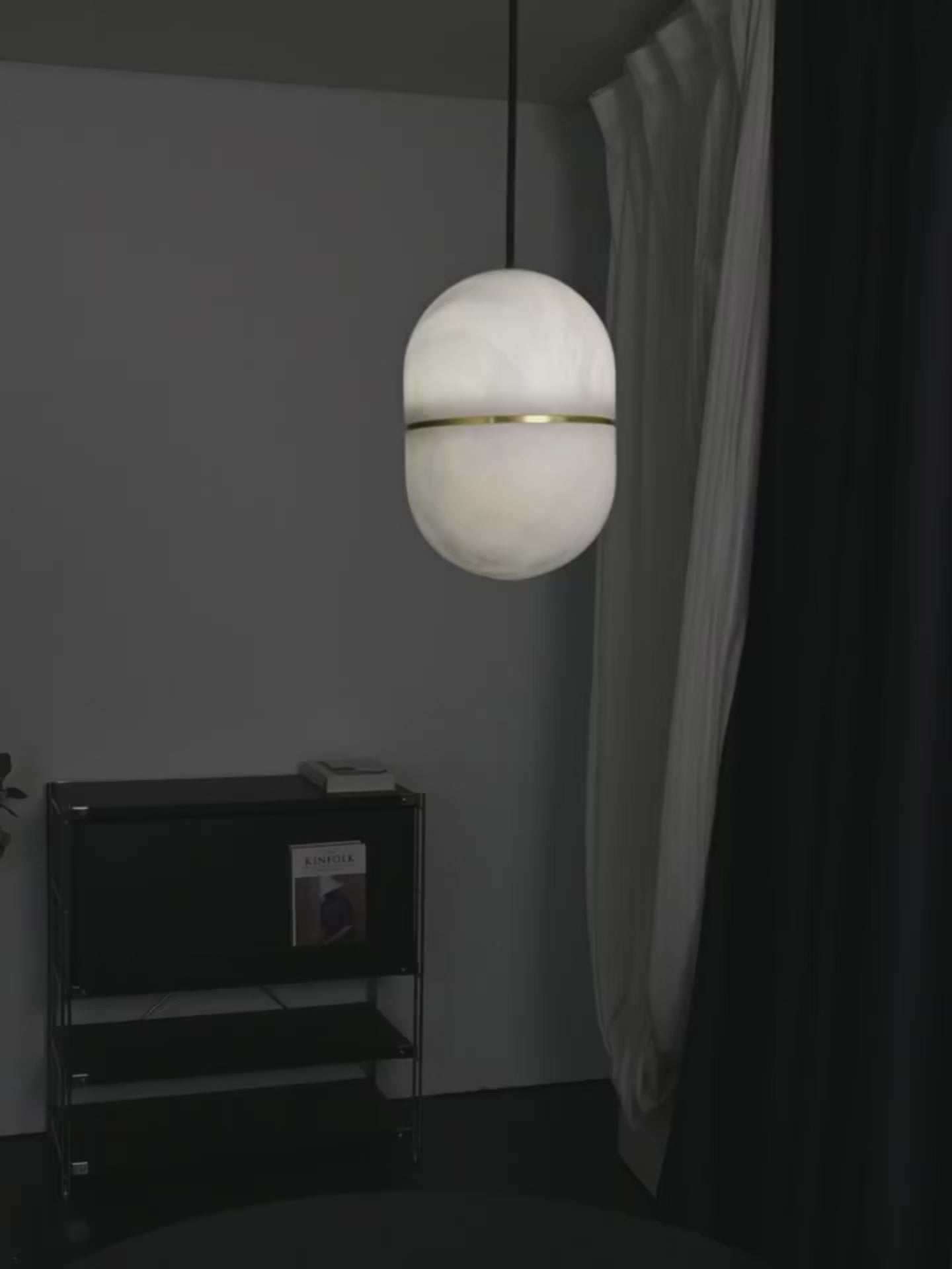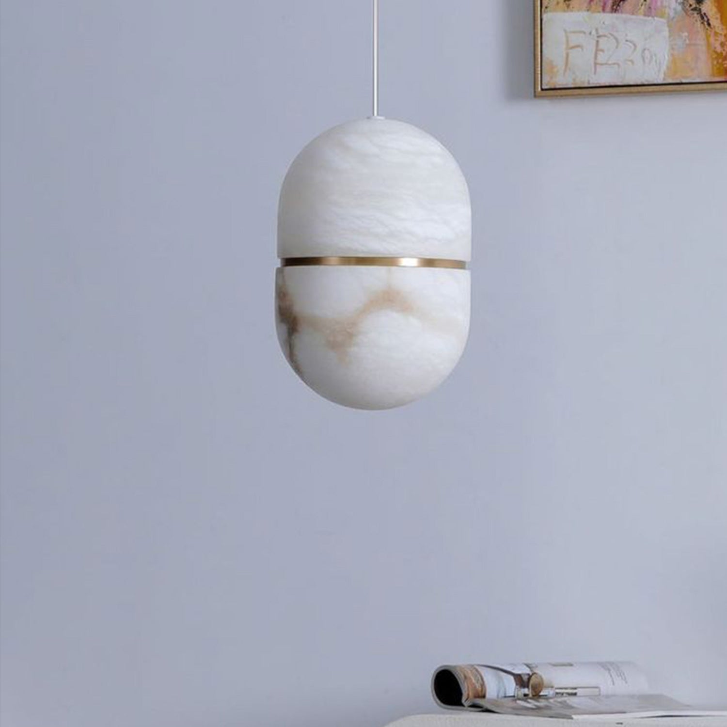 White Alabaster Cylinder Pendant Lamp-Turn on