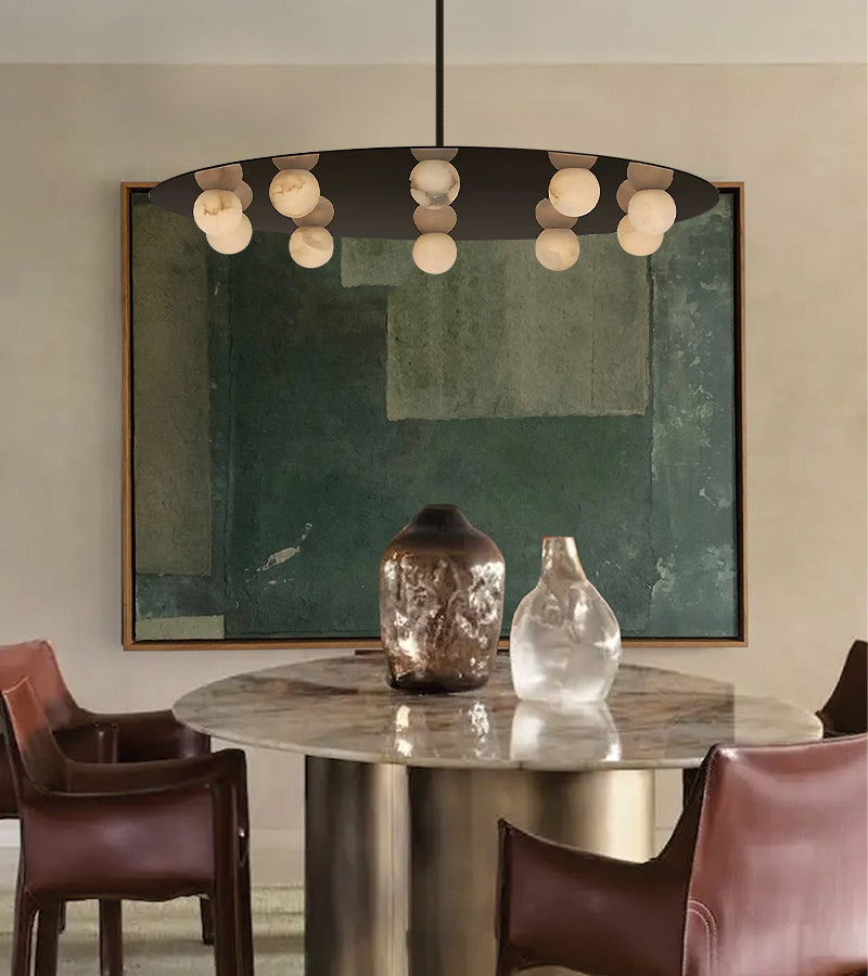 - Provides soft, glare-free illumination through an alabaster globe shade.