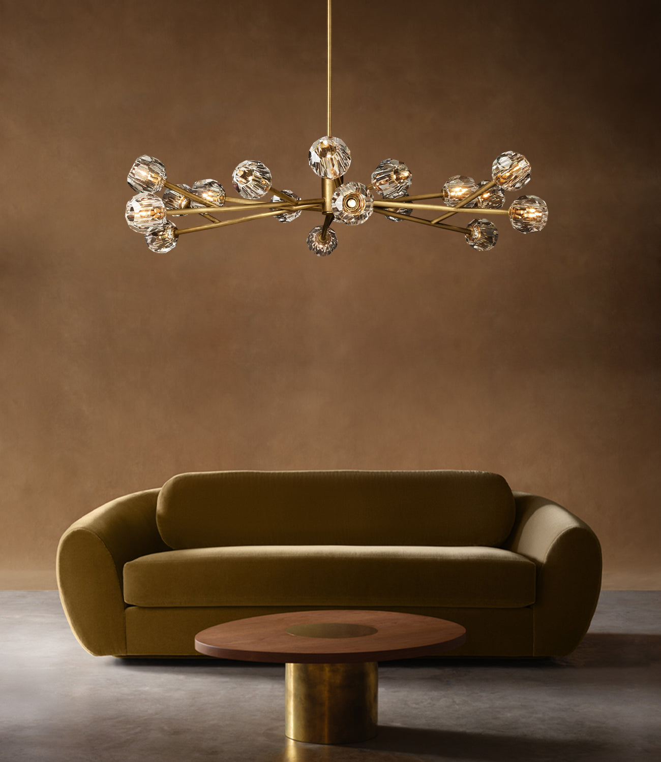 Modern starburst chandelier in brass or black.Crystal shades offer a brilliant, glare-free glow. Durable solid metal resists corrosion. Perfect for living, dining, and bedrooms.