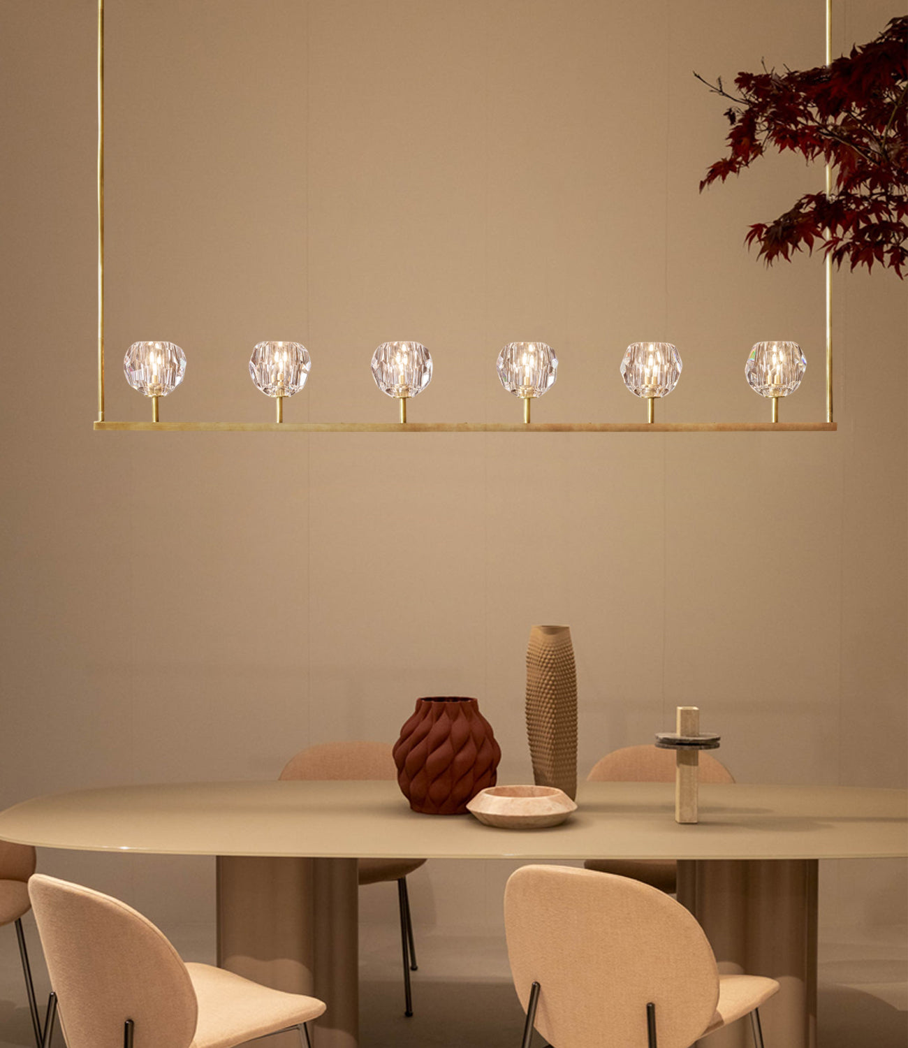 - A modern art installation for your ceiling, available in warm brass or sleek black finishes.