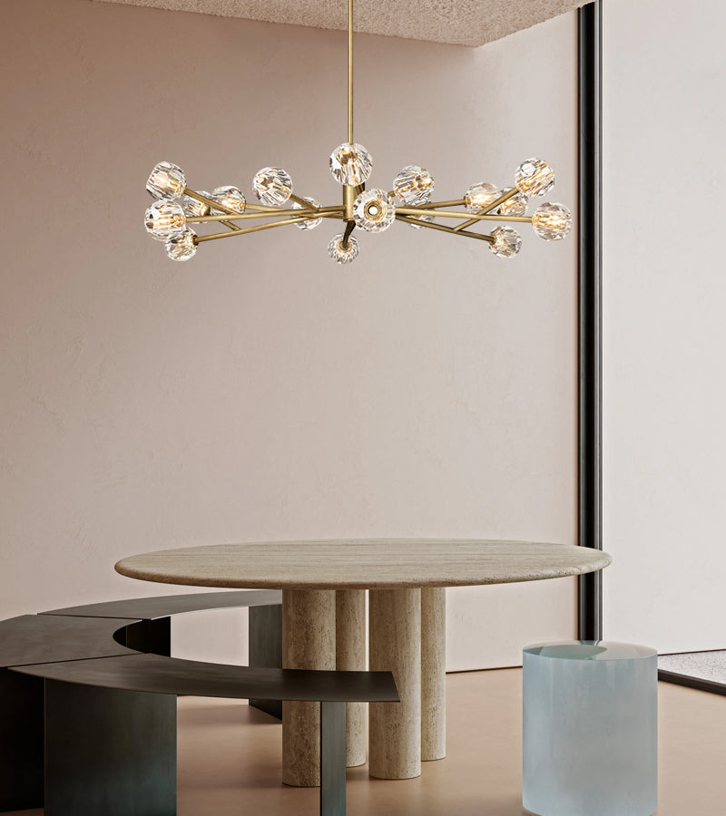 Elevate your space with our stunning starburst chandelier, where modern art meets functional brilliance.