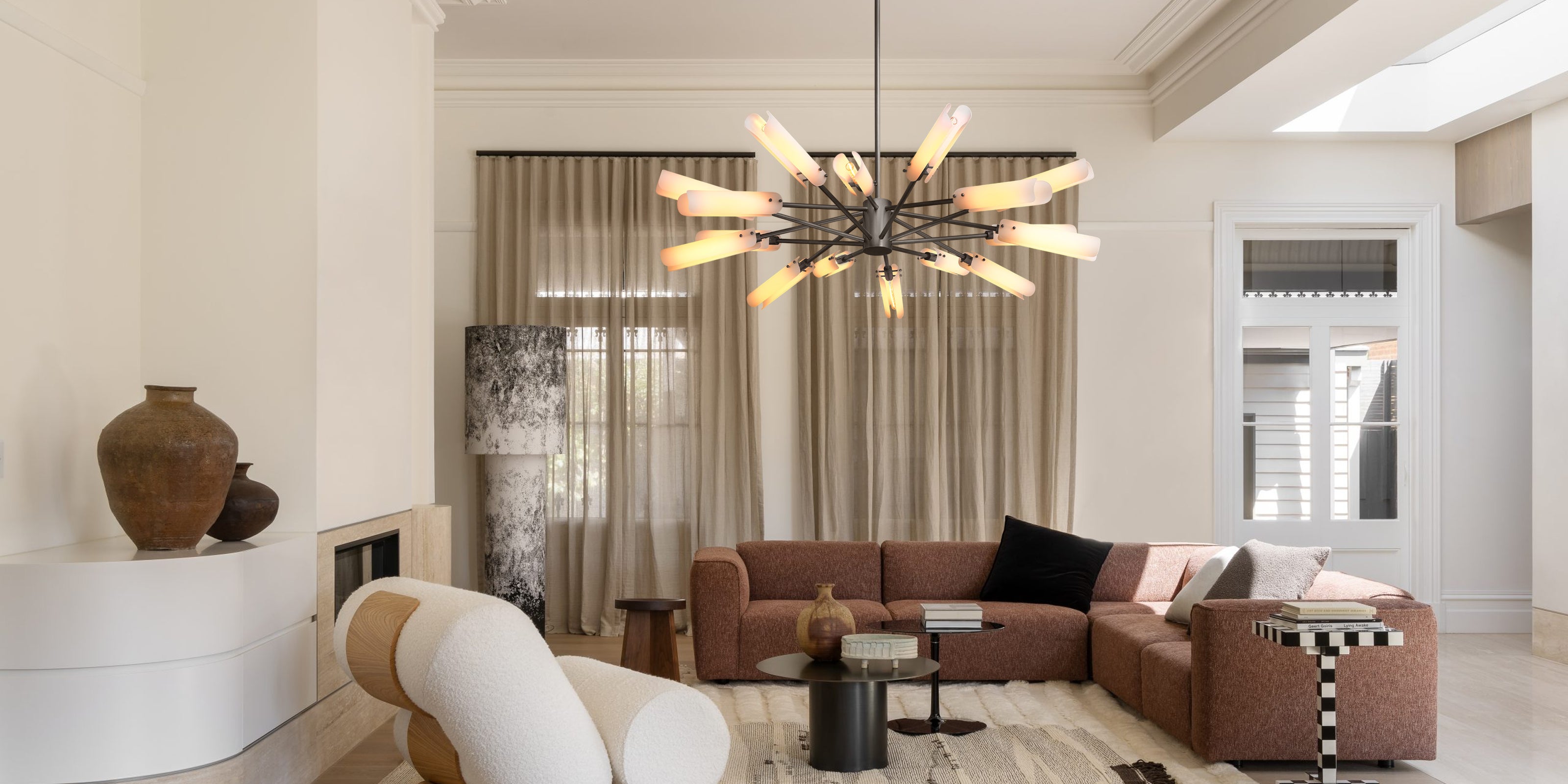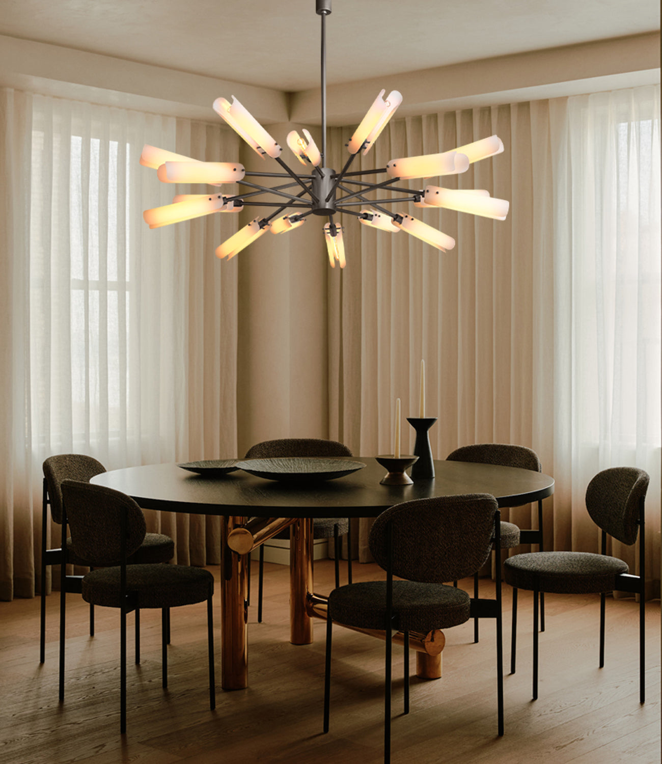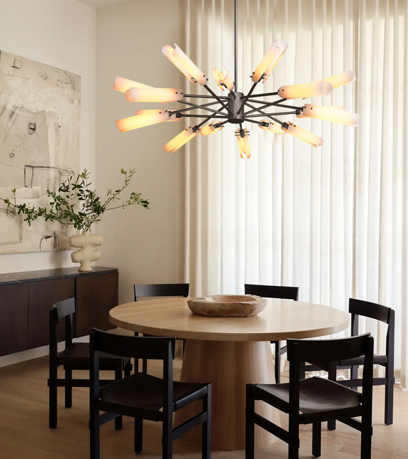 Perfect for elevating any interior, this chandelier combines artisanal craftsmanship with refined modern design, creating a soft, inviting glow that enhances both classic and contemporary spaces.