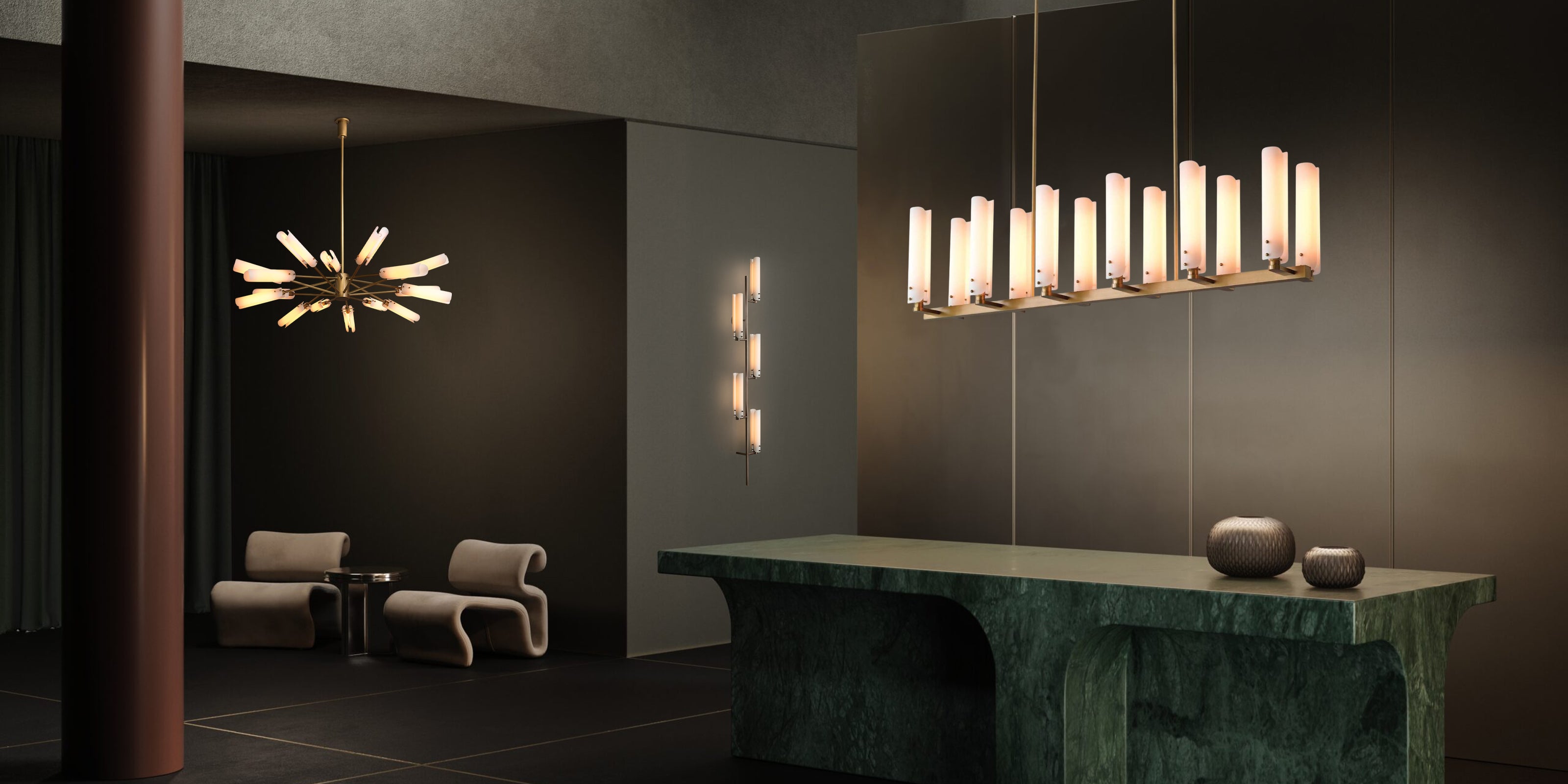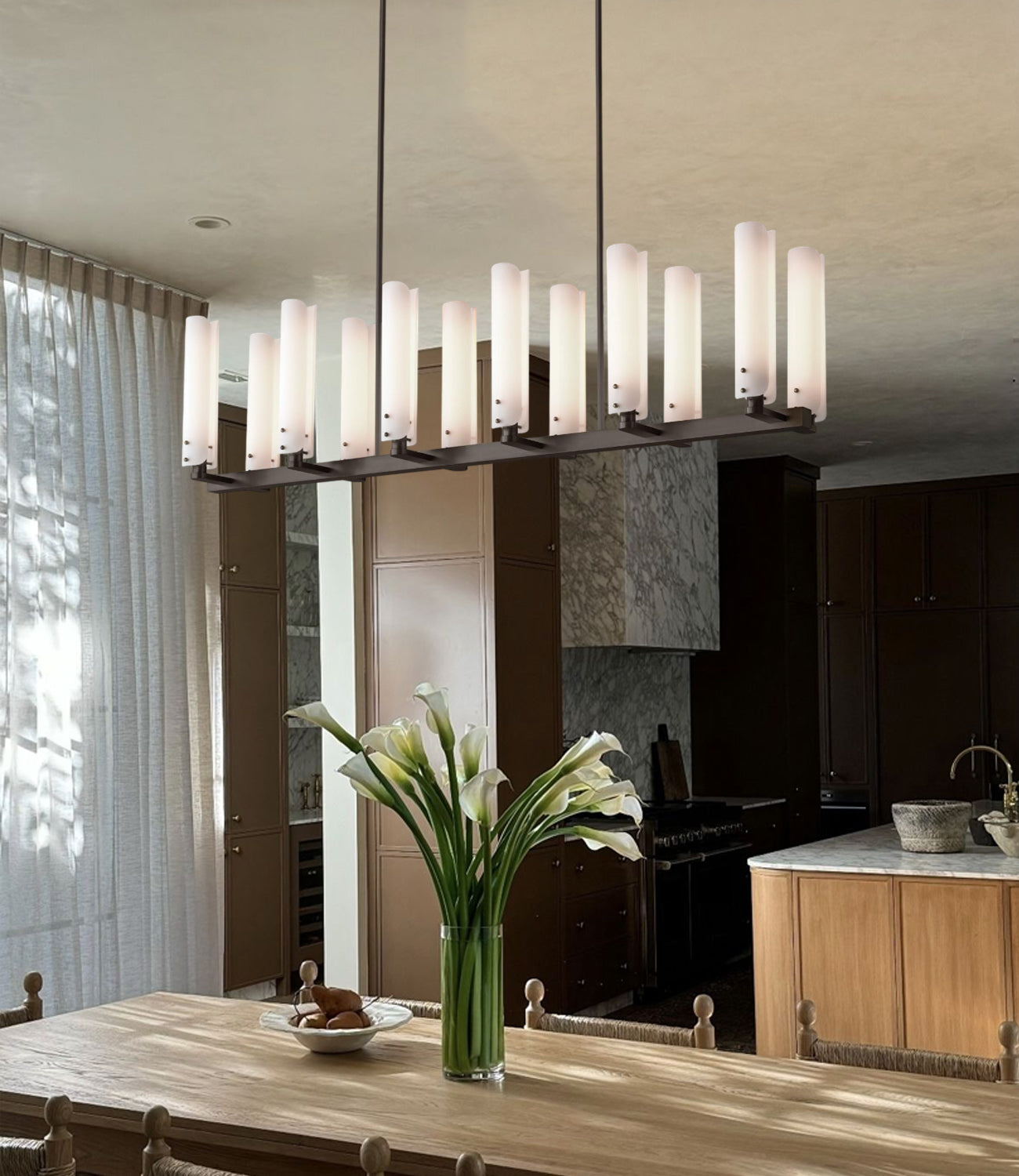Modern Design Platiere Linear Chandelier Collection with Opal White Glass | Antique Brass/Black Finish