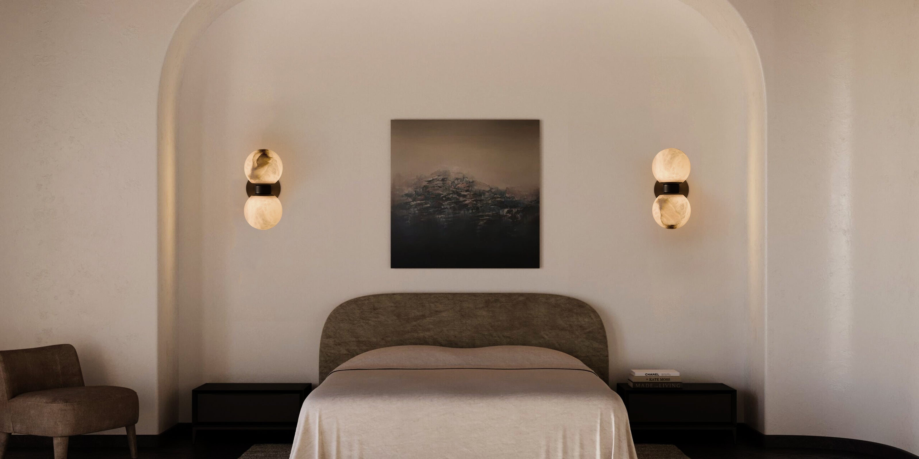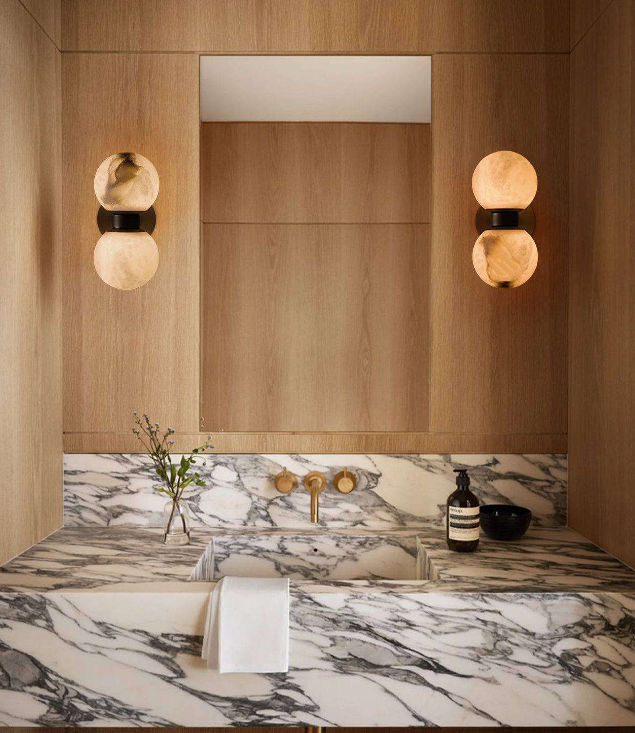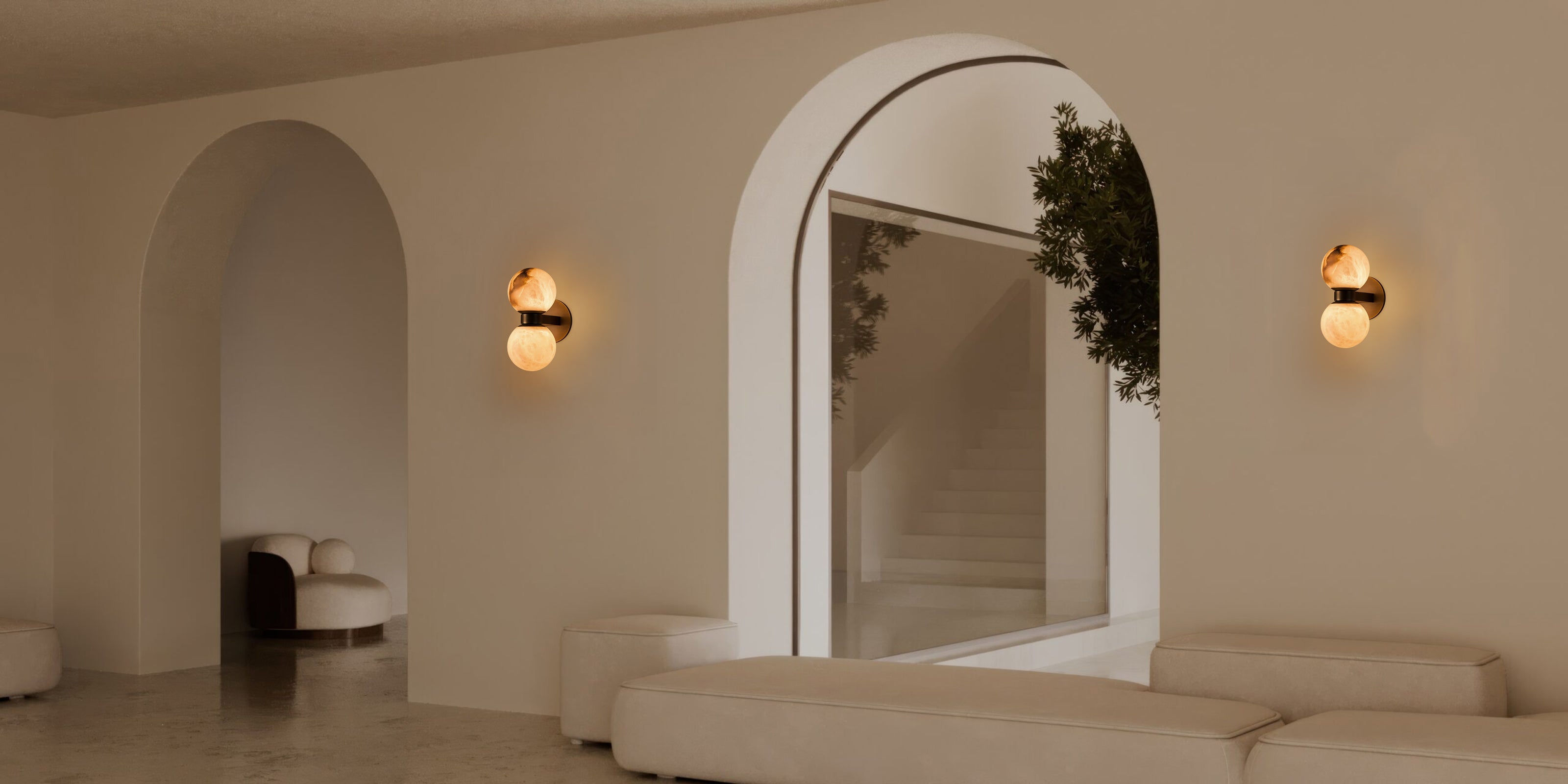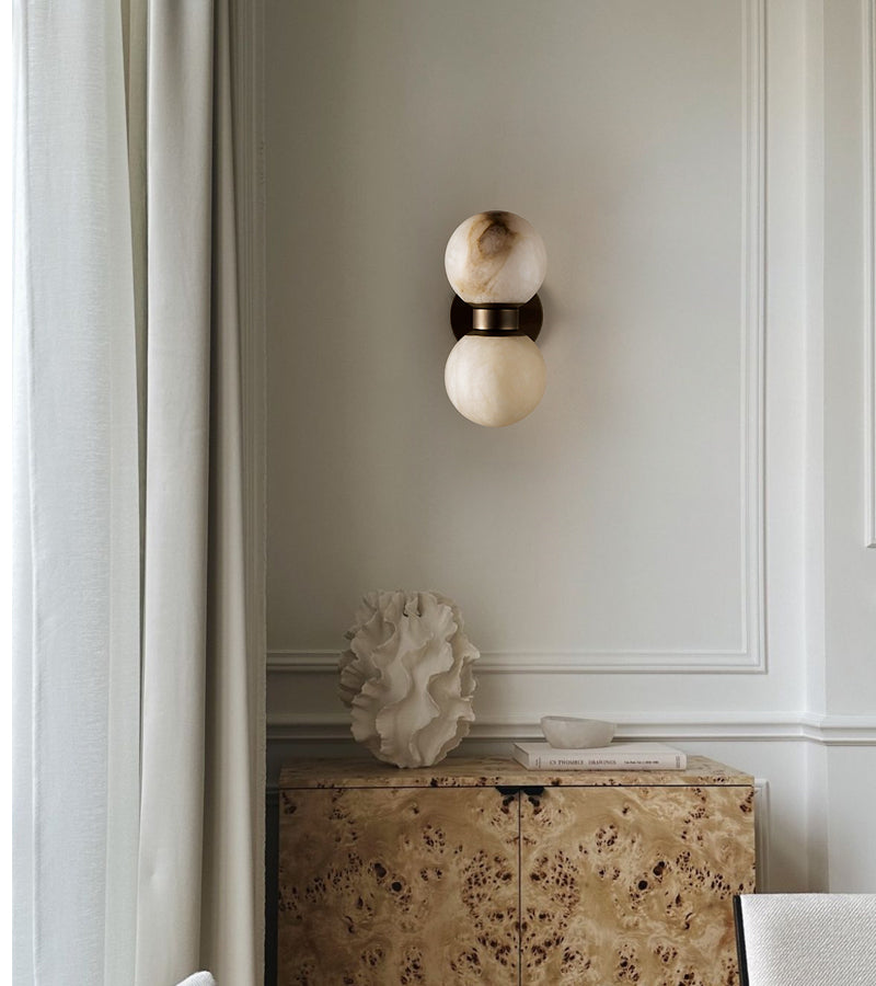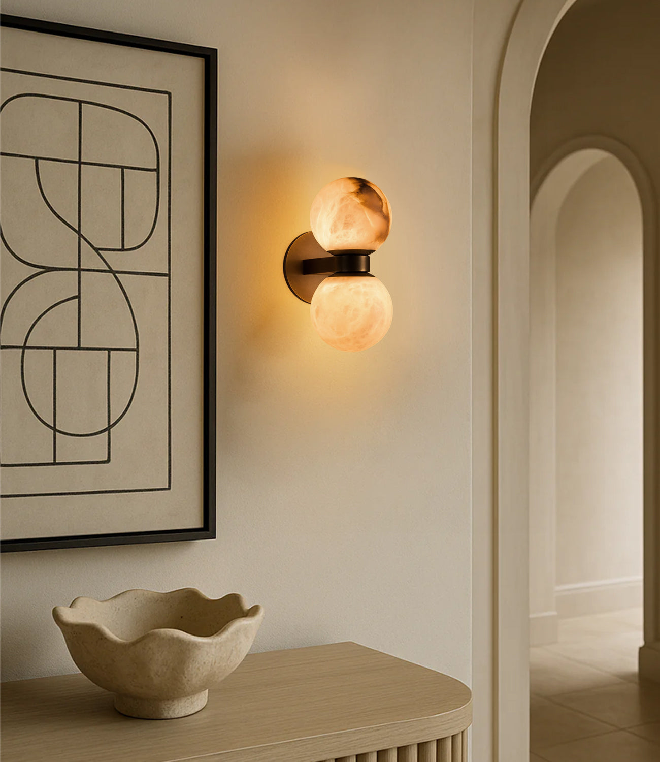 Twin Alabaster Globe Wall Sconce | Brass & Stone Glow
