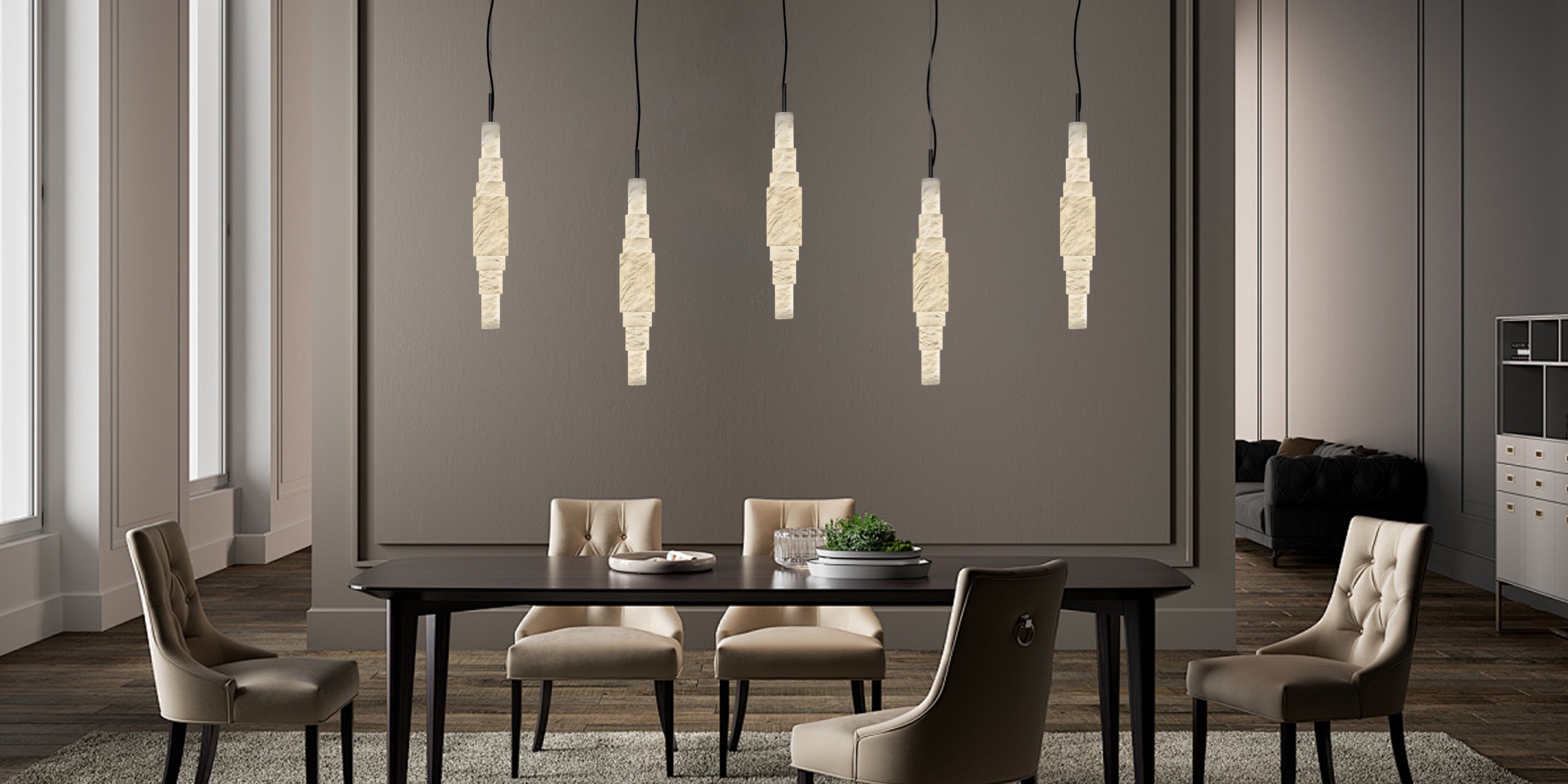 - Natural Alabaster Stone-Crafted for a soft, warm glow with organic texture.
