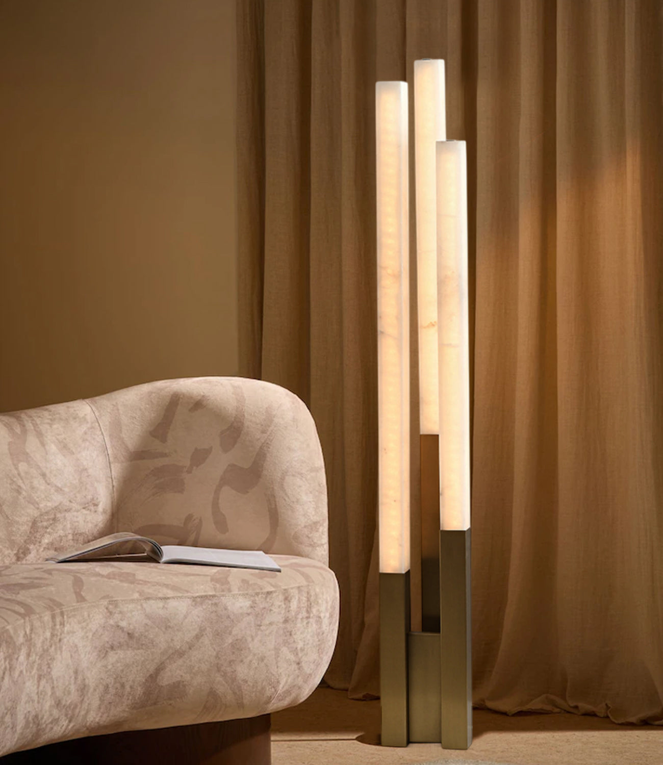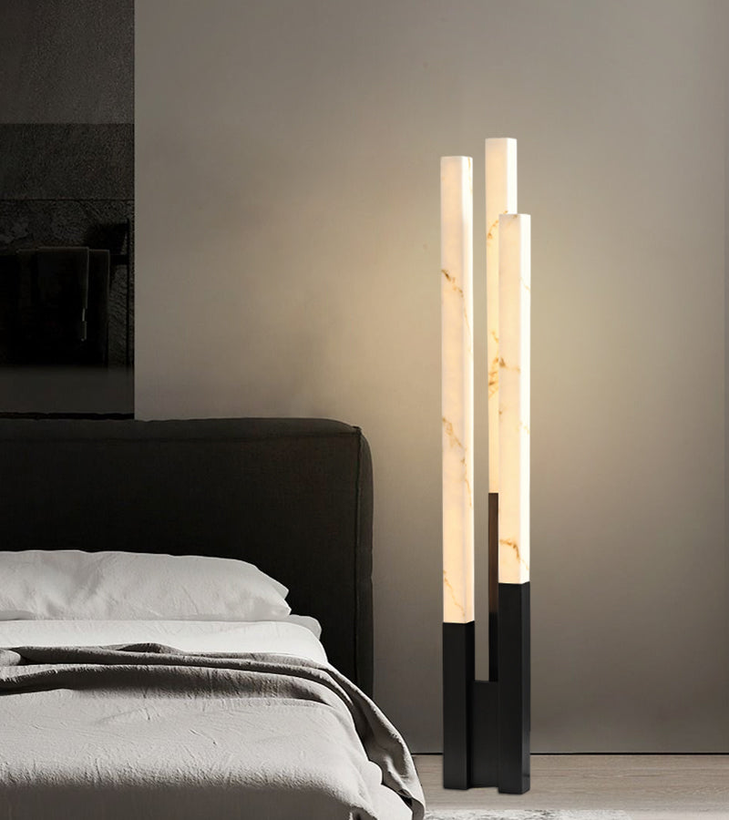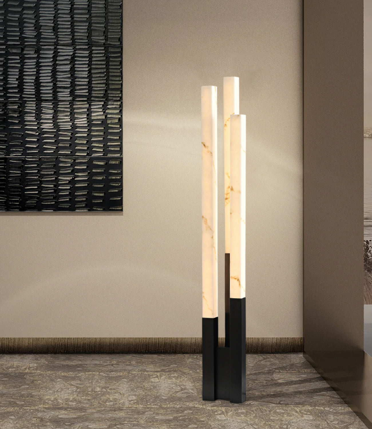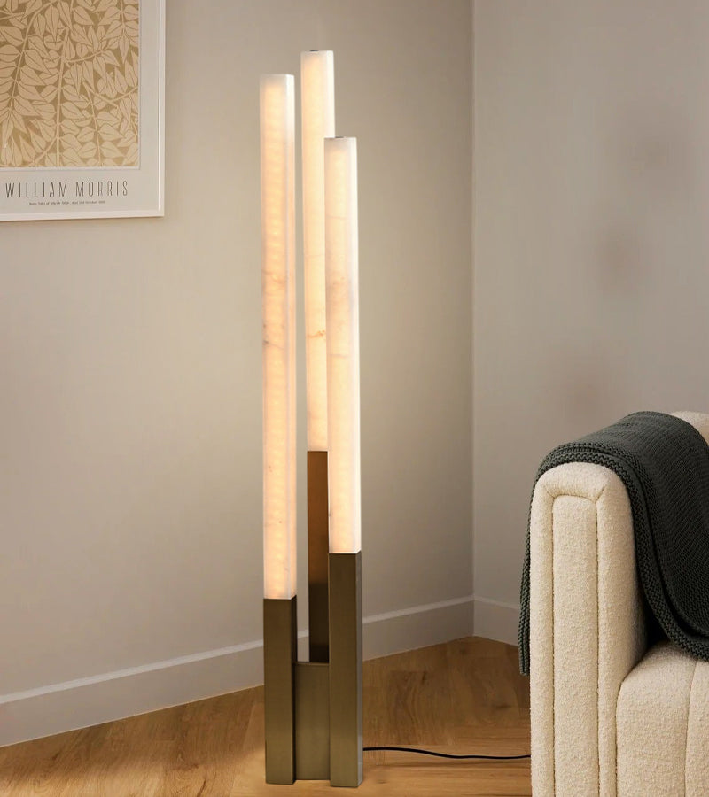 Modern Triple-Glow Floor Lamp: Elegant Alabaster and Metal Design