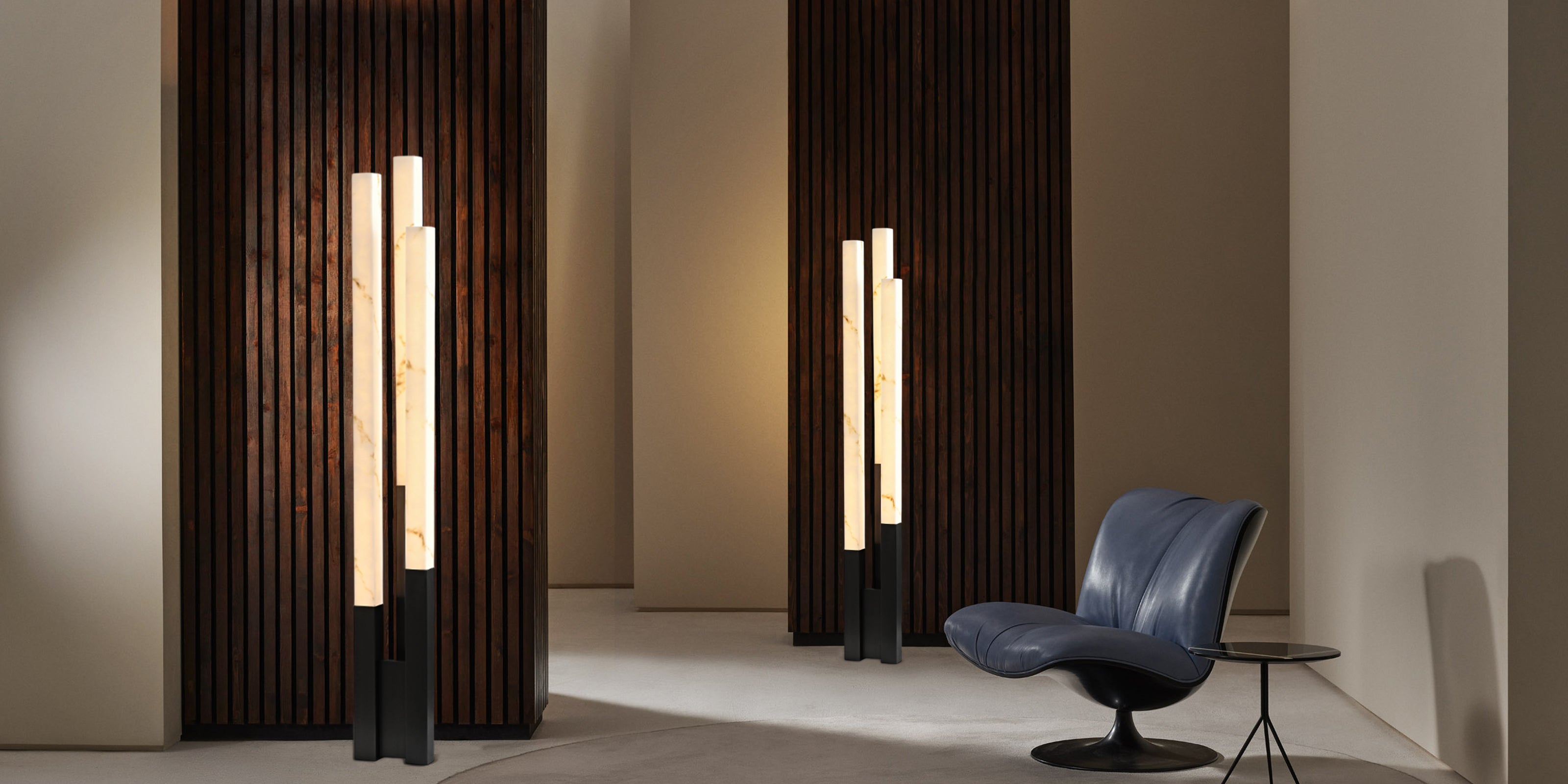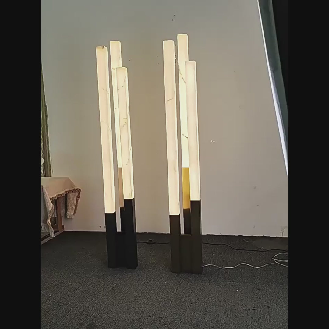Elevate your space with a striking floor lamp that doubles as modern art. Its elongated, gently glowing column creates a soft, ambient radiance from within, adding vertical elegance and warm, inviting light to any room.