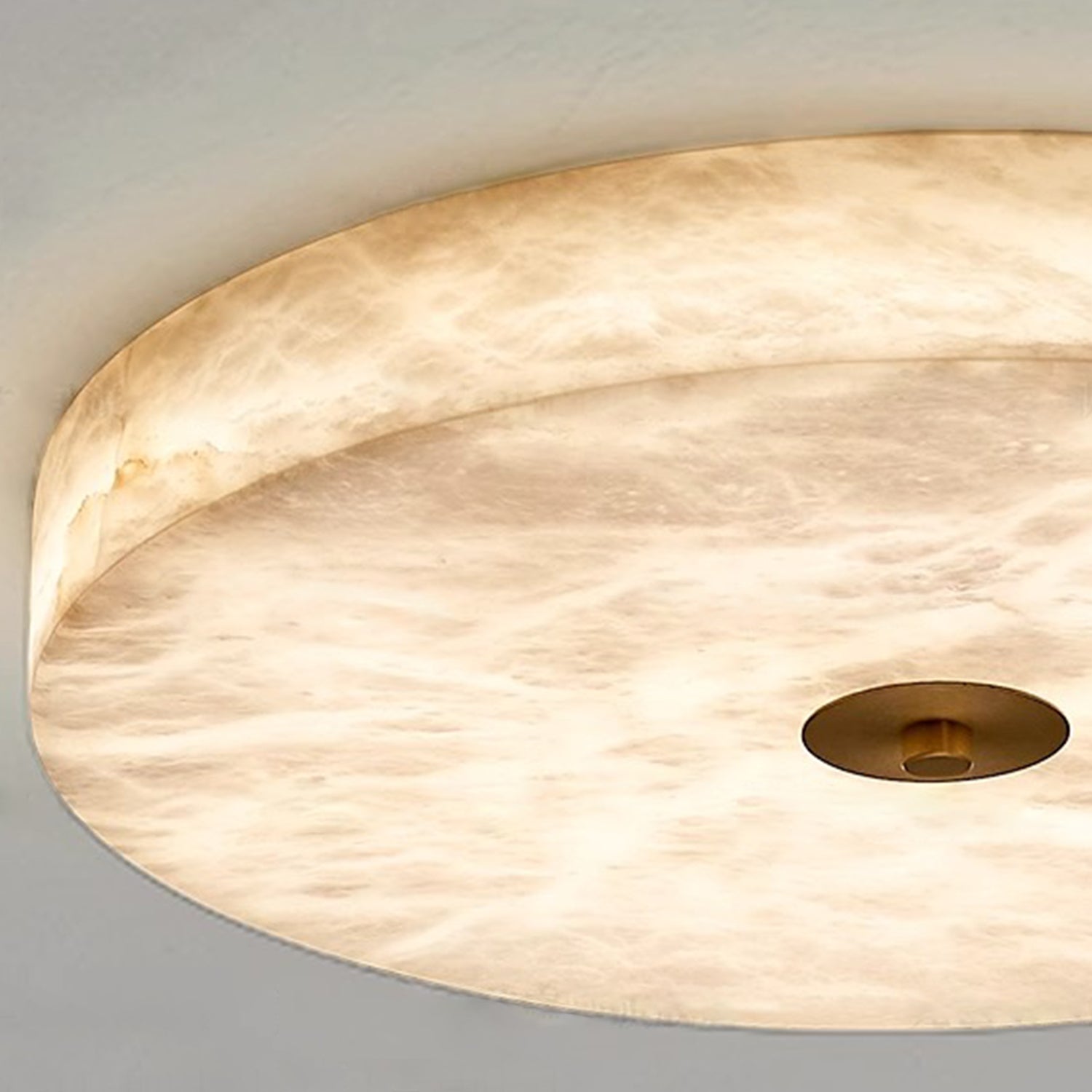 Give your low ceilings a warm glow with this totally modern, flush-mount light fixture. Carefully crafted alabaster panels with a white marble finish are fixed in place with metal accents, bringing lots of vintage-inspire flair to any room.