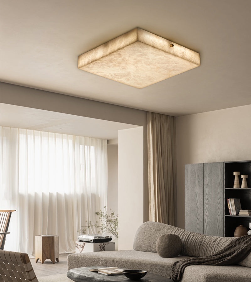Enhance your contemporary home with our Alabaster Square Flush Mount Ceiling Light. Made from natural gypsum, it exudes an organic and eco-conscious vibe. The modern snowflake design adds elegance and warmth to any room, while the long-lasting light source provides energy efficiency and a soft, comforting glow.