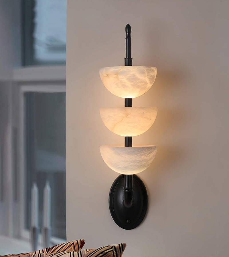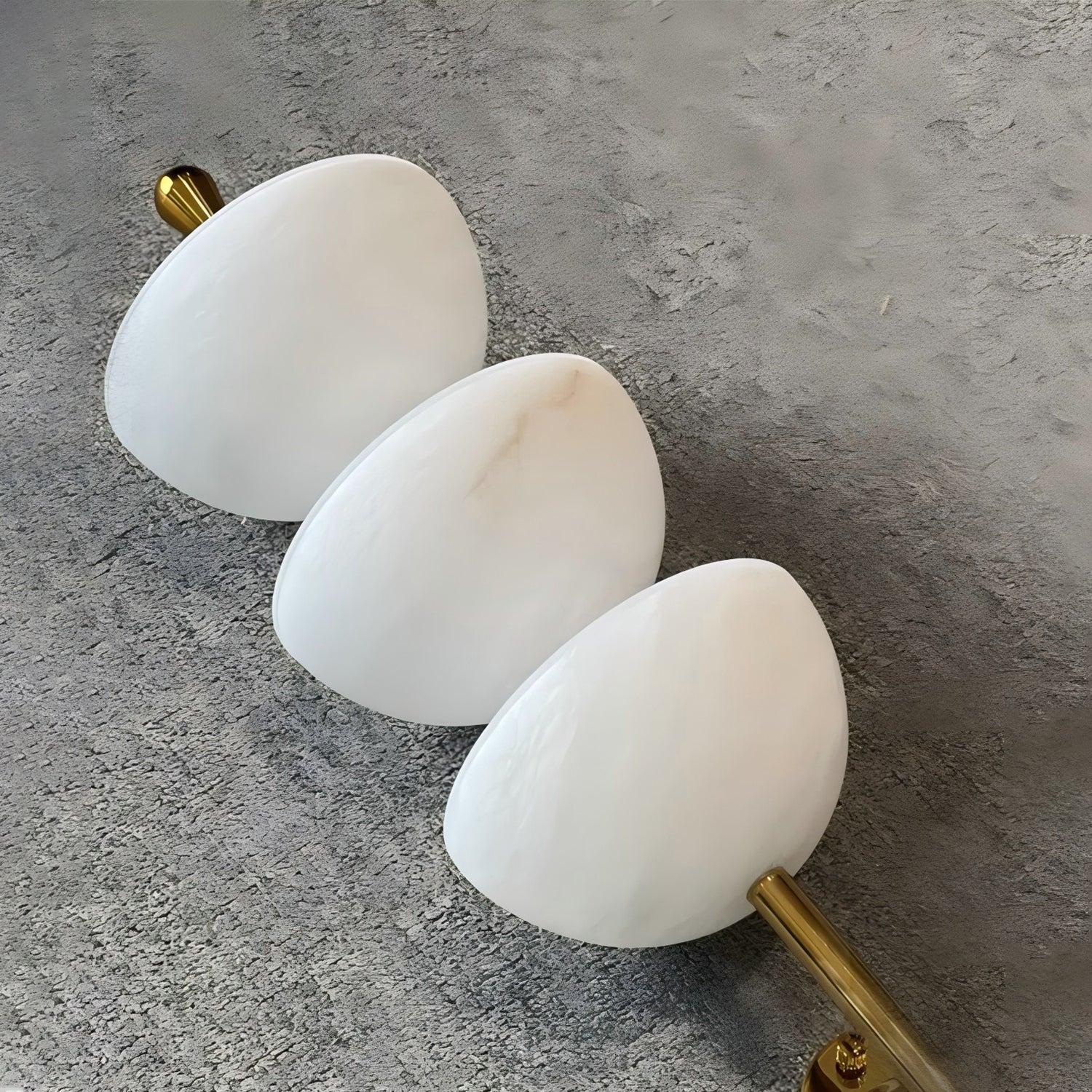 Modern Triple Alabaster Brass Stone Semi-Oval Wall Sconces 6in 15W