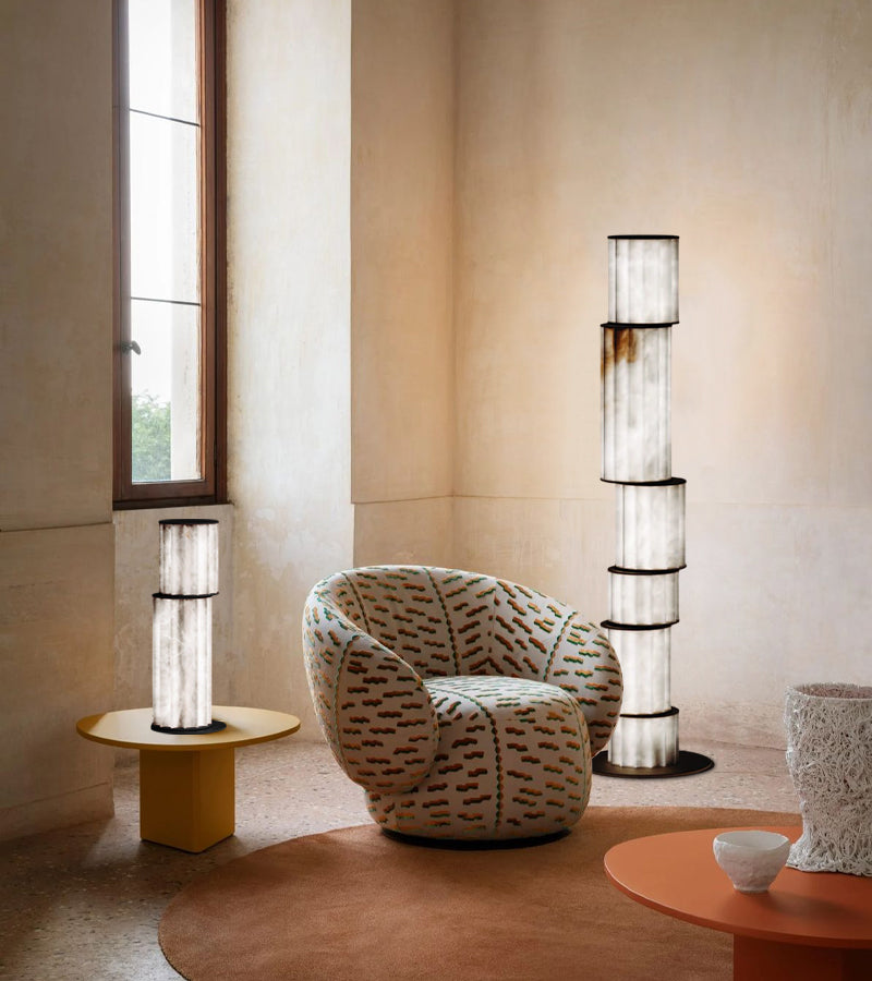 - Natural luminous alabaster, minimalist lines. Emit warm, soft, premium diffused glow.