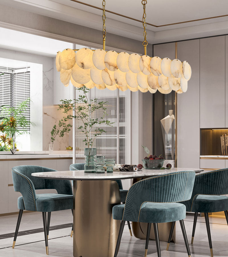 The rich golden tones of brass complement the natural variations of alabaster, bringing a touch of warmth to the overall design. This chandelier using E27 light source, A work of art when it lights up. It is a luxurious item to captivate and charm with its elegant presence.