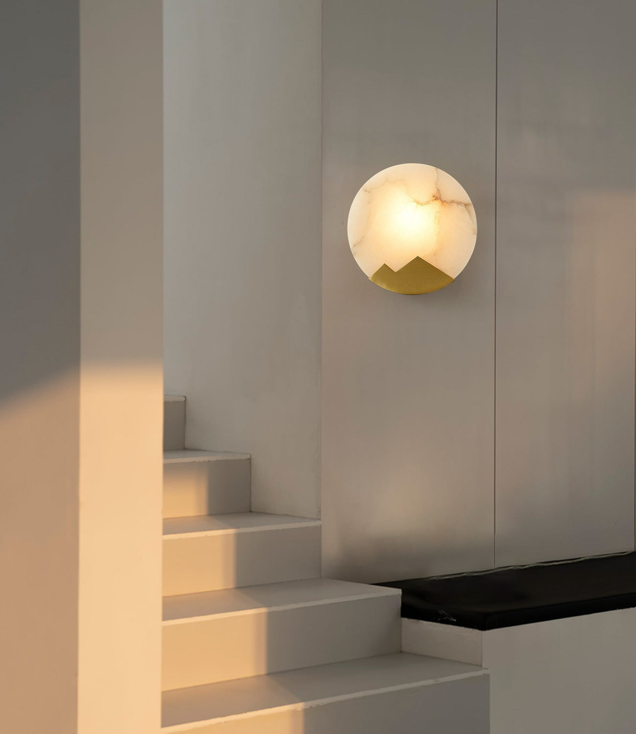 Nordic Alabaster Brass Wall Sconce Light Fixture 8" with Mountain-shaped Frame