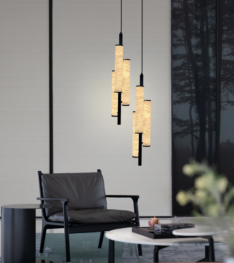Dia 5" Cylindrical Design Alabaster Pendant Lamp for home living dining room decor