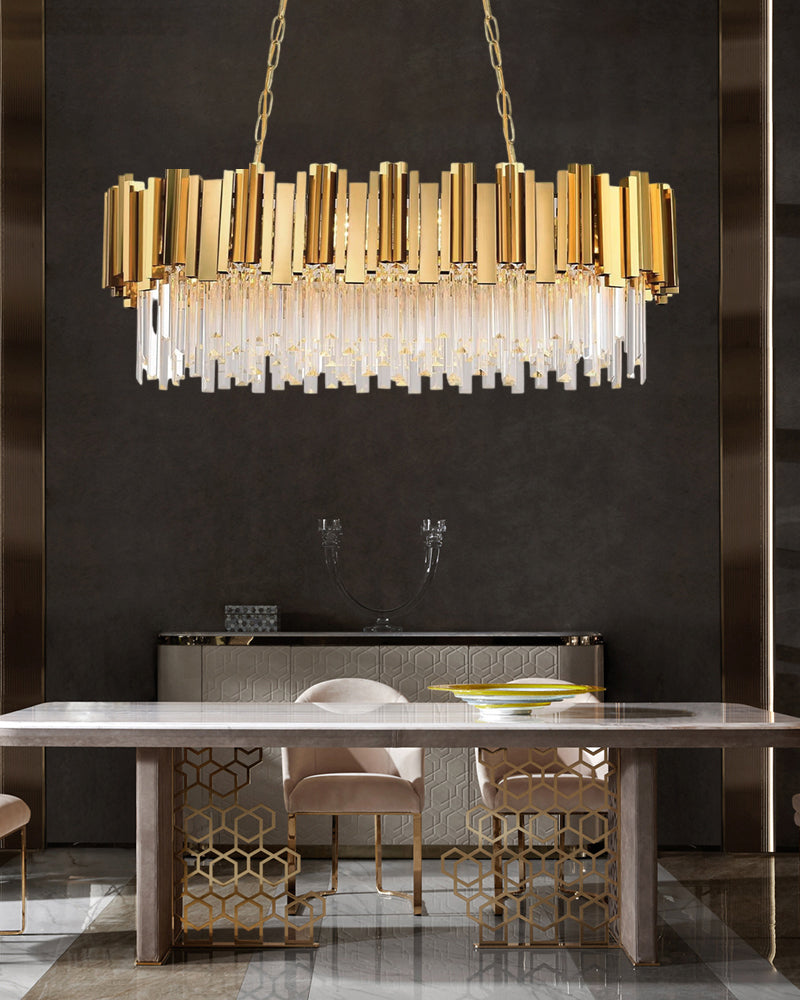 Oval Crystal Chandelier Gold Chrome Stainless Body