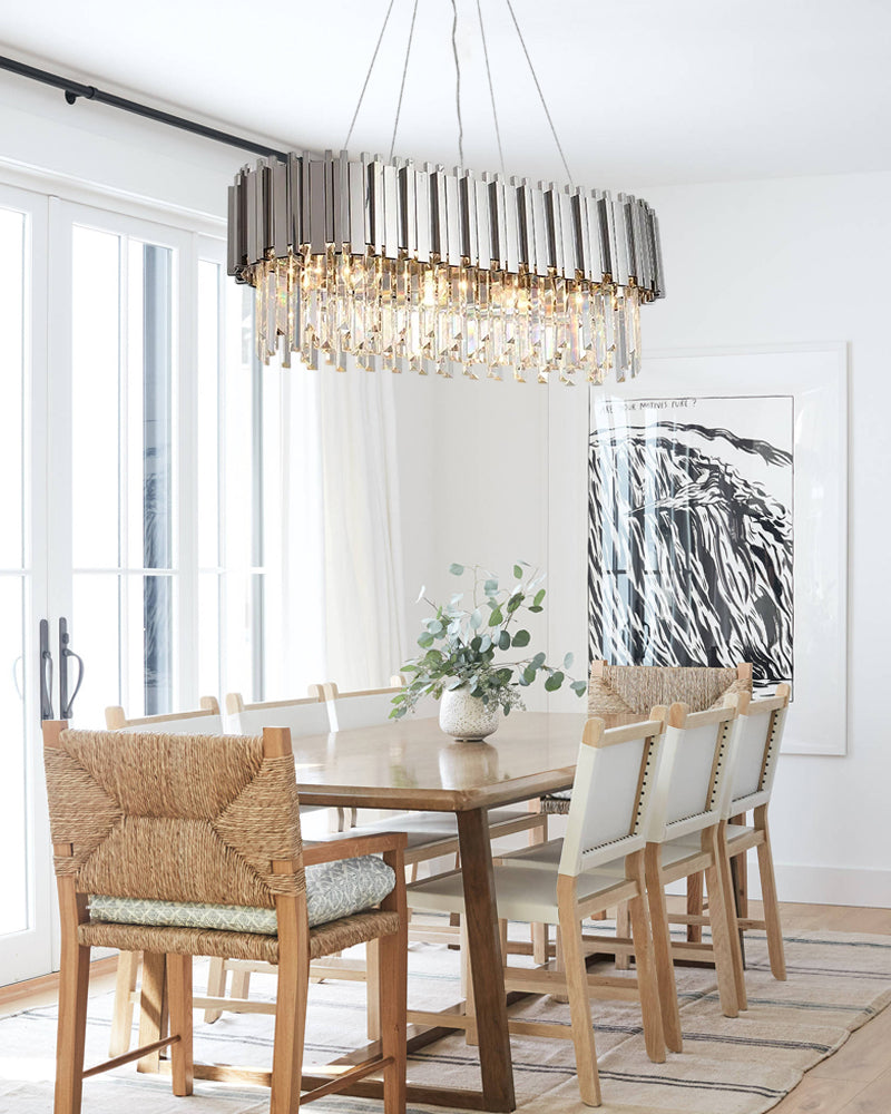 This luxury crystal chandelier is meticulously crafted with a superior gold-finished aluminium frame in an oval shape and selected K9 clear crystals, corrosion-resistant, lasts long, definitely worth it! It is ideal for dining rooms, living rooms, foyers, hallways, kitchen islands, and commercial spaces.