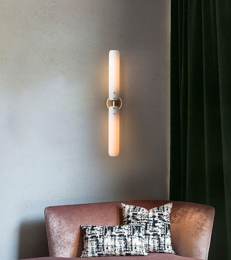 Glass Candle Style Wall Lamp, Introduce a touch of elegance with the timeless design. The brass finish adds a touch of class while glass shade balances light and shadow. Emitting a warm and inviting light, this wall sconce is perfect for any room, creating a cozy atmosphere.