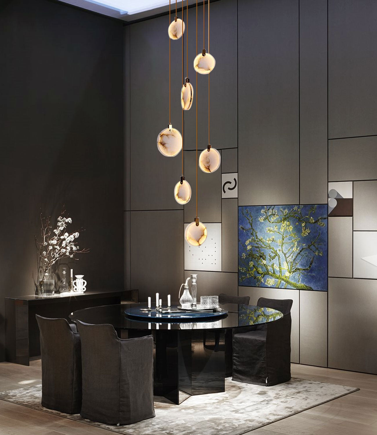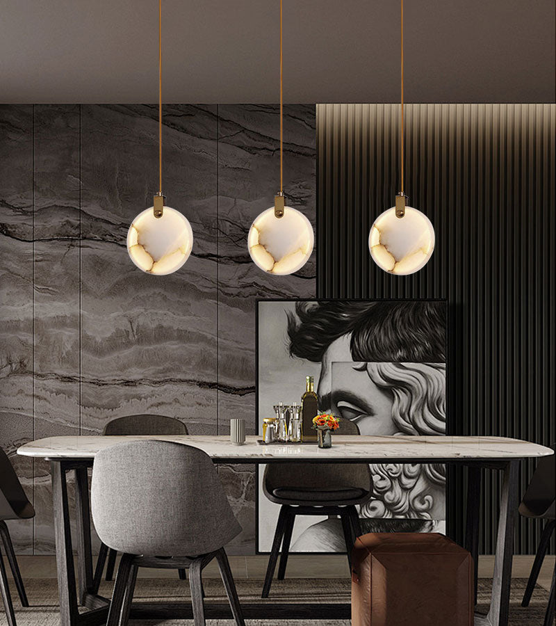 Equipped with LED chips, the chandelier emits a warm and inviting light. We support to make dimming, allowing you to adjust the lighting according to your needs and preferences. The polished finish of the Copper Accessories and marble lampshade completes the overall aesthetic, giving it a timeless appeal that will impress for years to come.