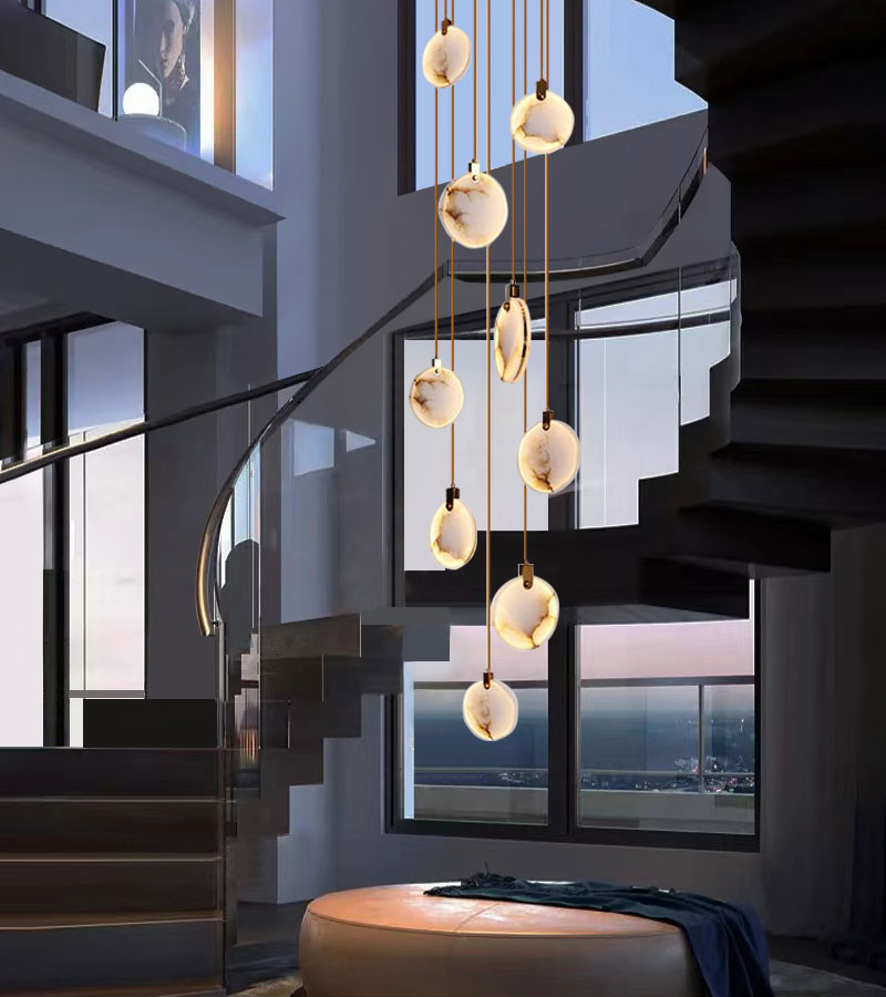 Postmodern LED Spanish Marble Chandelier Lamp in Brass for staircase