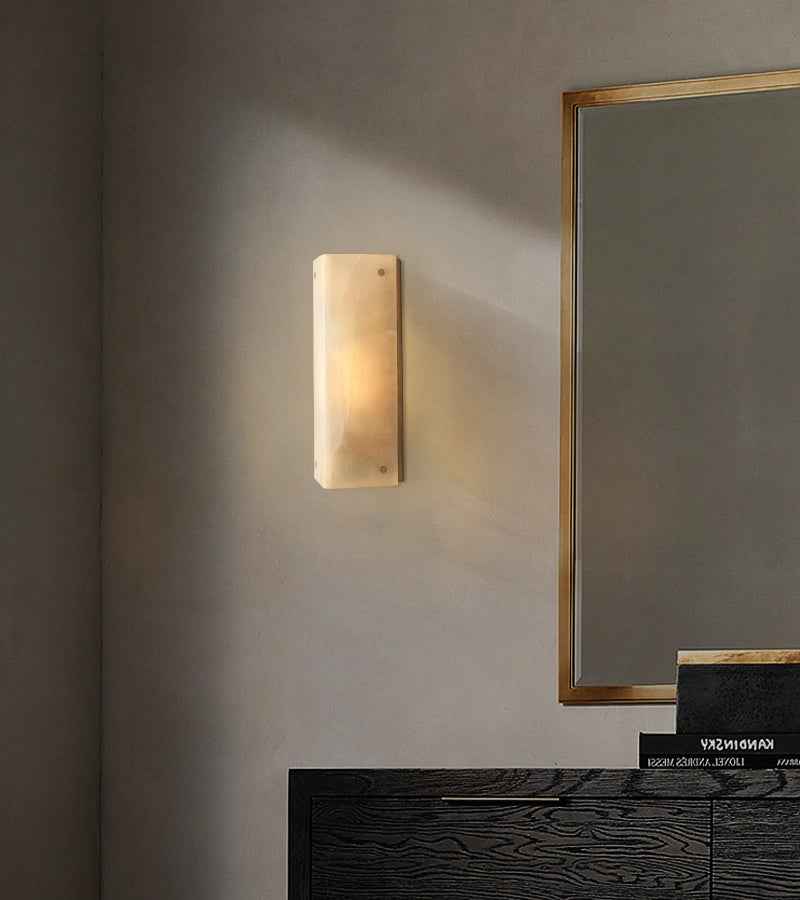 Reynard Series Geometric Wall Sconce | Sleek Brass Frame Handcrafted Natural Alabaster, Premium Brass Hardware for Hallways, Living Rooms, and Entryways