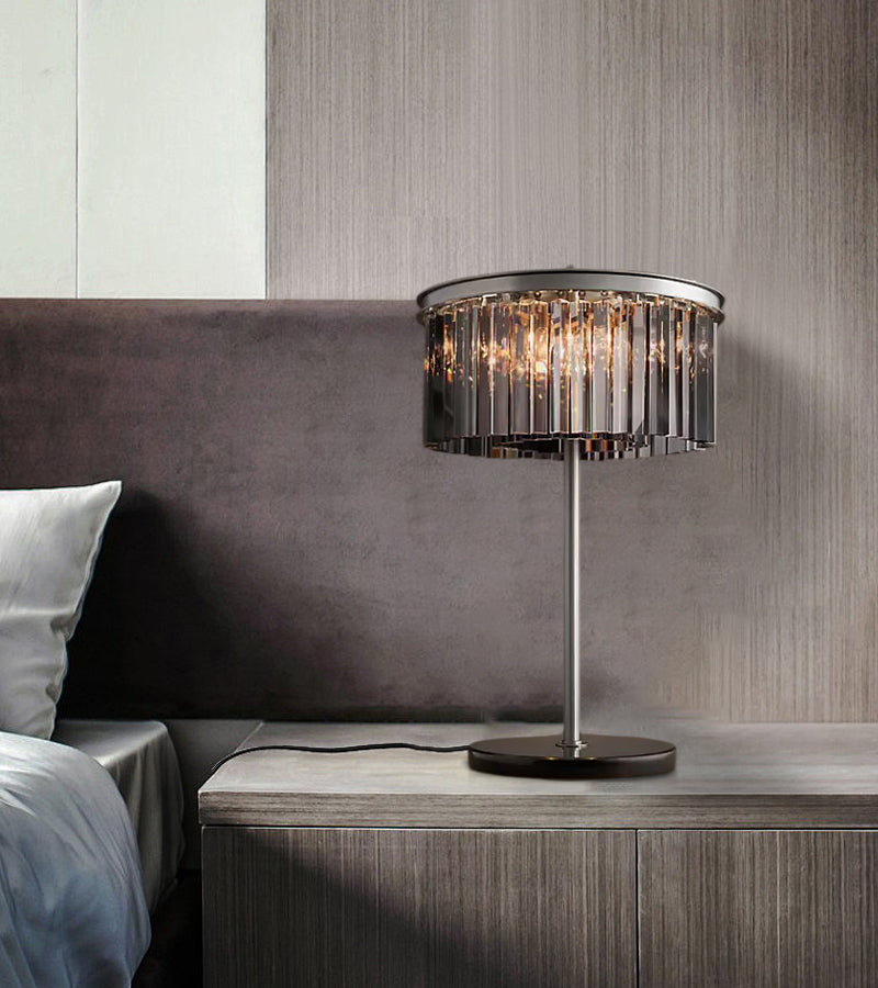 Simplicity Cylinder Shape 2-Tier Crystal Table Lamp in Black Metal with Clear/Smoke Glass
