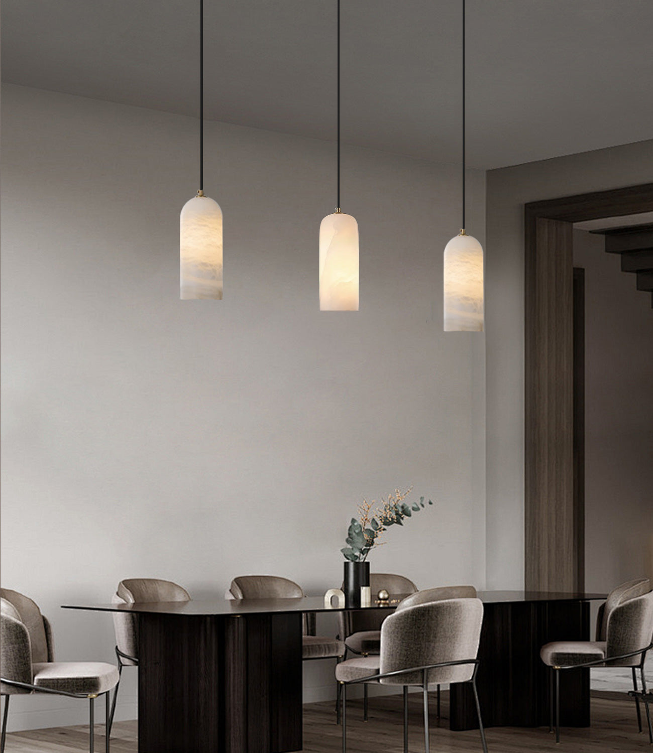 Made from sleek and durable alabaster, this pendant lamp adds a touch of sophistication to any room.
