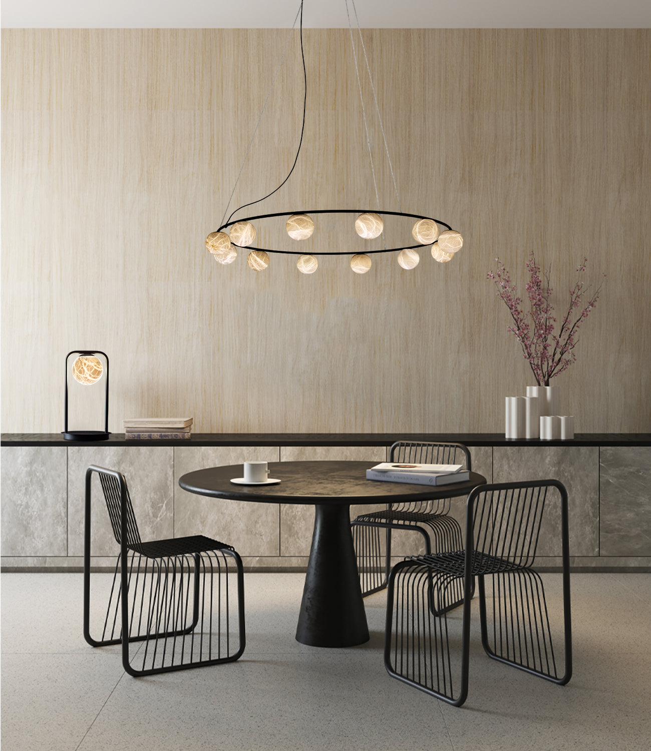 Our pendant lamp can bring a luxurious, artistic touch to any interior setting, making a statement in both contemporary and classic spaces. These pendants emulate the soft glow of moonlight, casting an inviting ambiance. With their elegant, textured design, they add depth and warmth, becoming a focal point that beautifully enhances your interior style.
