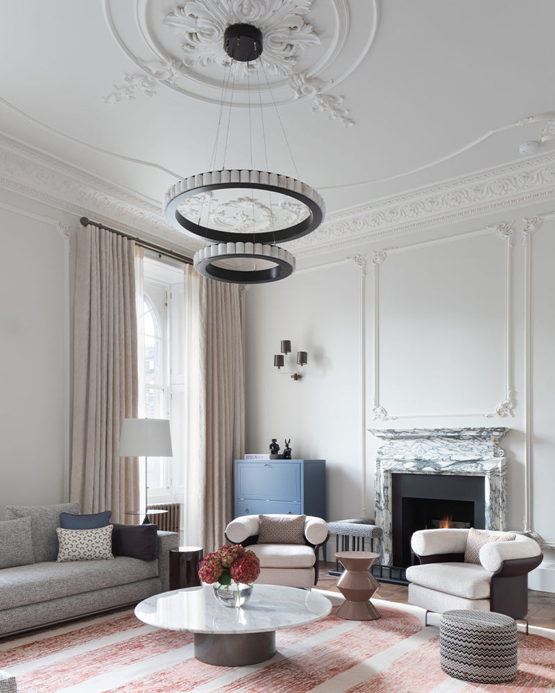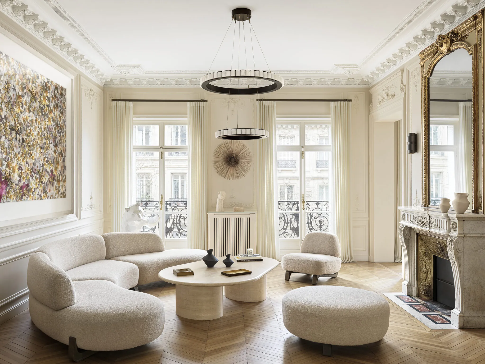 - Hand-finished alabaster columns and sustainable marble detailing.