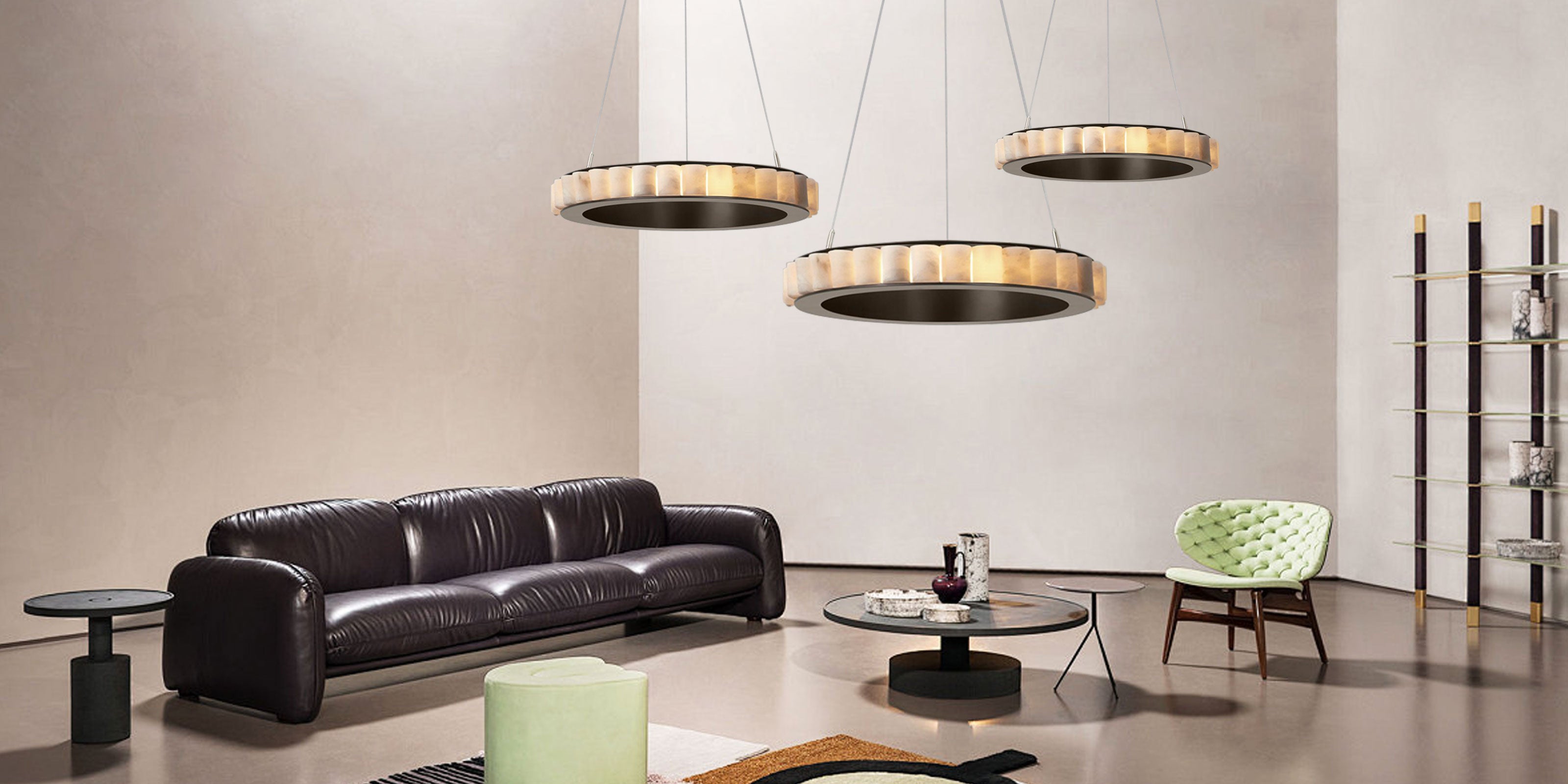 - Integrated LEDs highlight alabaster’s organic striations for warm, layered light.