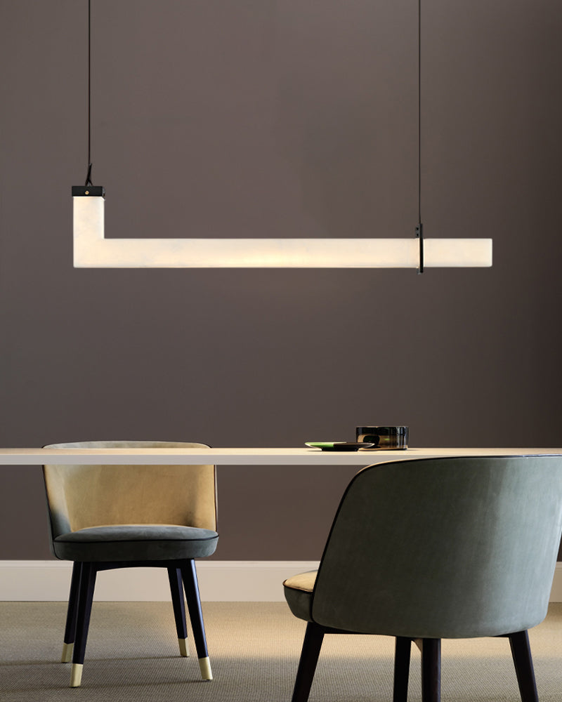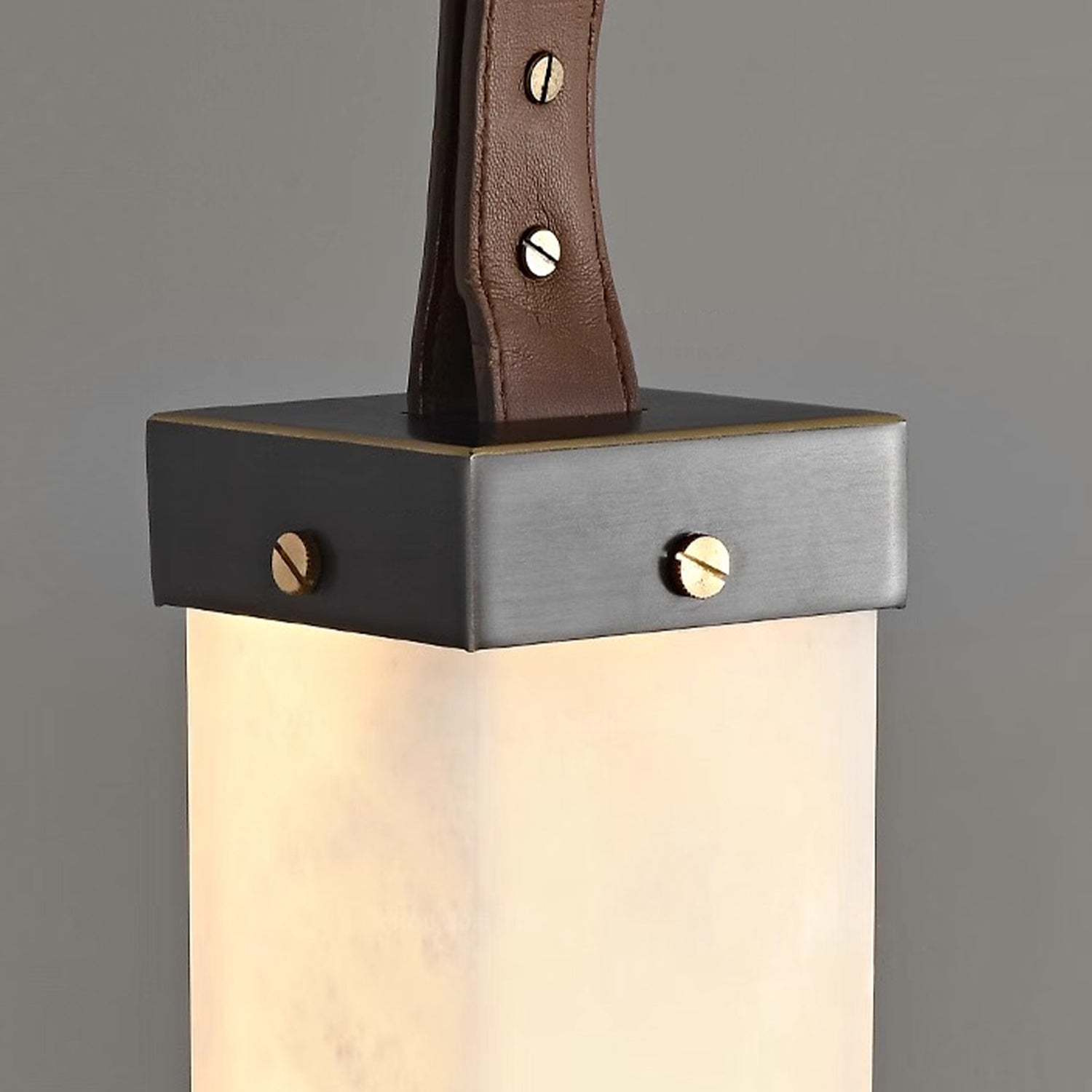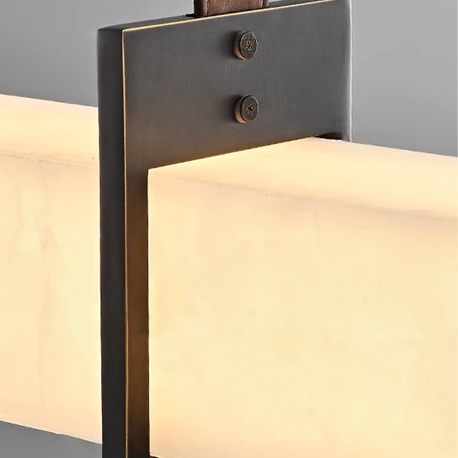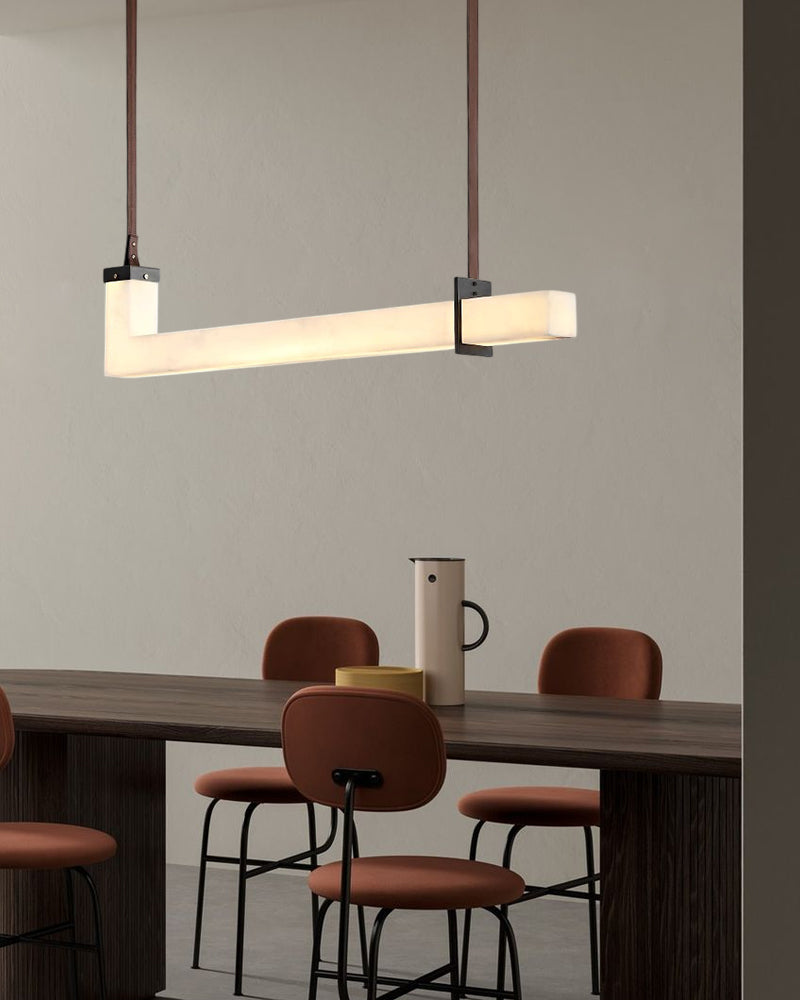 Up & Down Lighting Linear Brown Leather Alabaster Linear Pendant Lights Long 39“ 47”