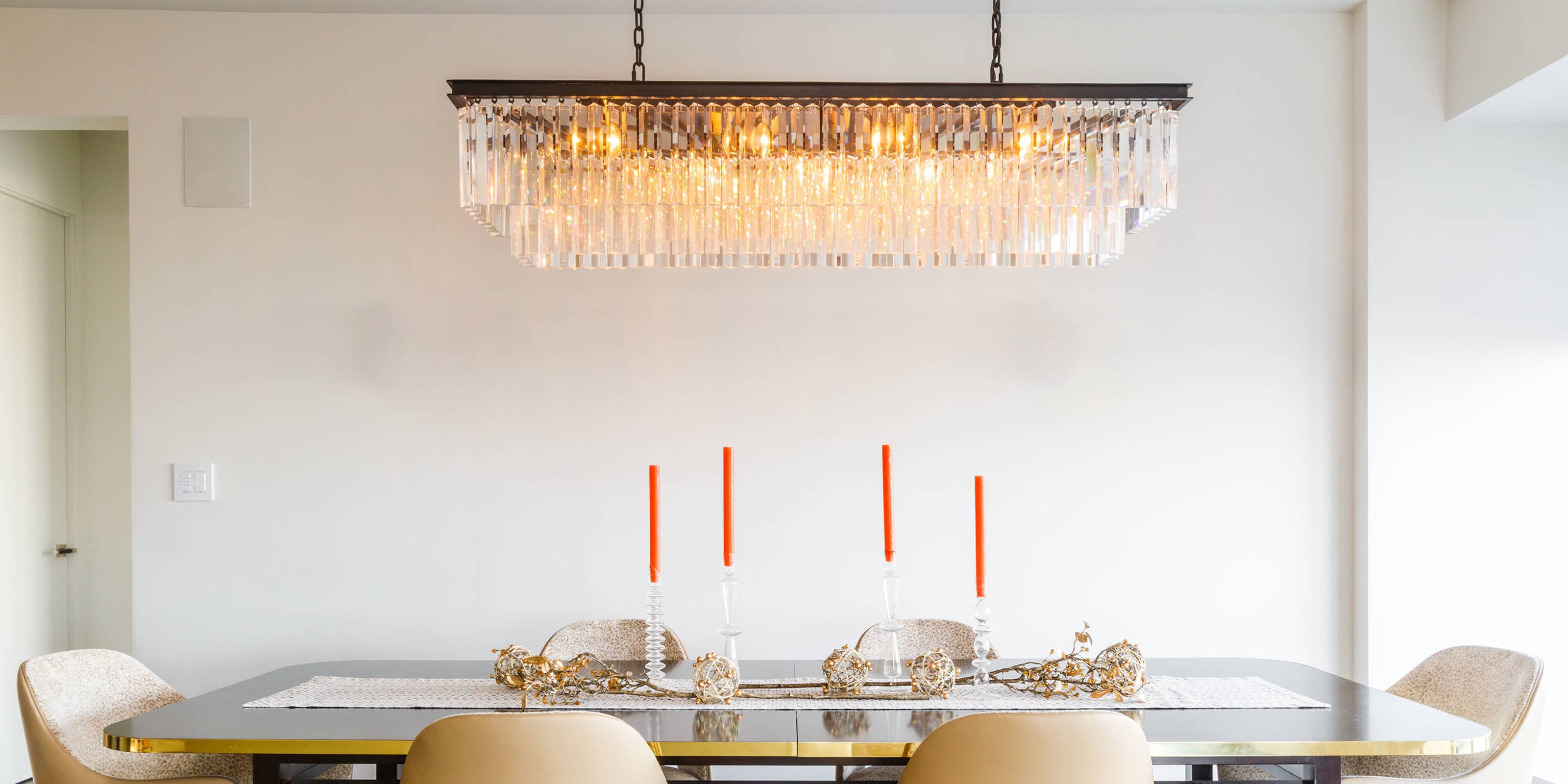 This dining room chandeliers feature a quality metal frame combined with crystal strips lampshade for a retro elegance, add a romantic, chic and bright atmosphere to your room.