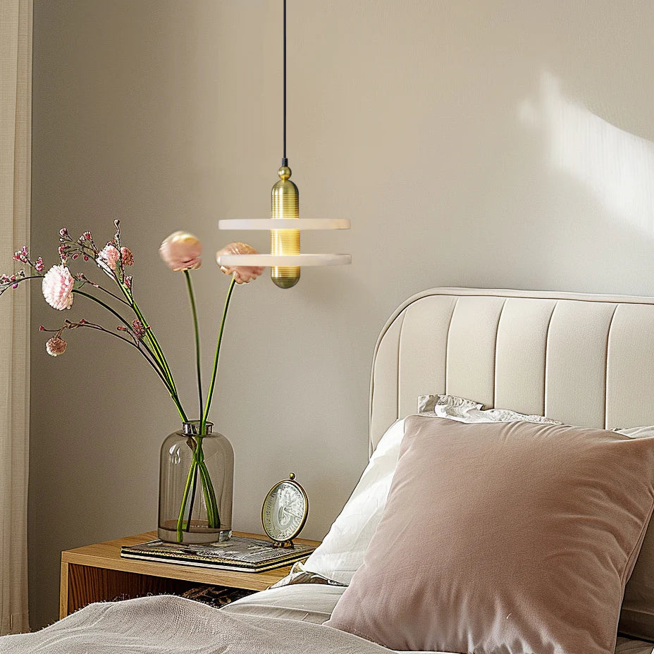 Vintage Nature Alabaster Double Ring Pendant Light Brushed Bronze D7" & D11"
