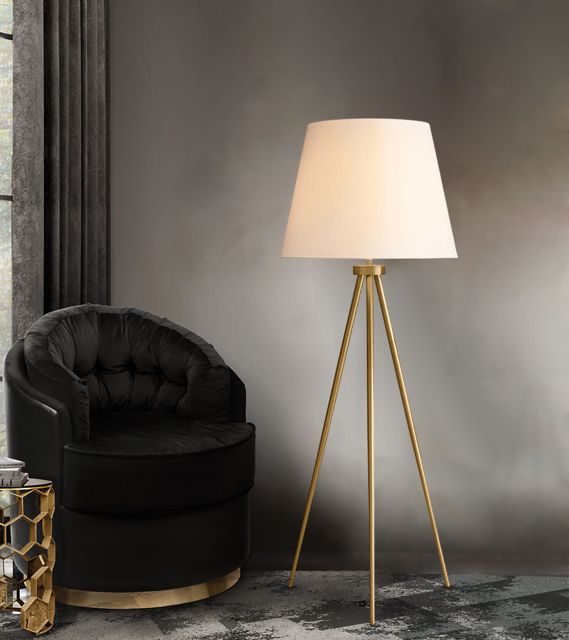 Modern Tripod Floor Lamp-Brass/Black/Silver
