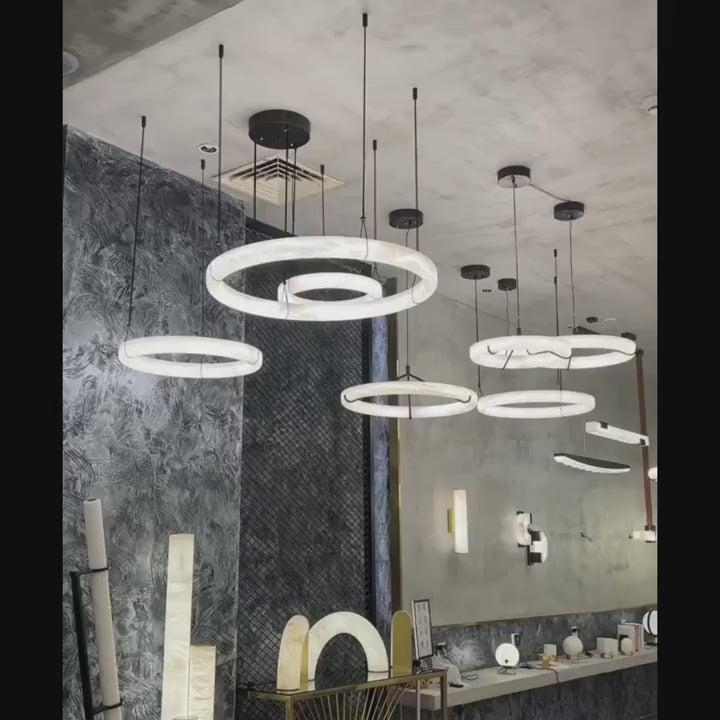- LED照明:如需智能照明解决方案,不妨尝试我们的 LED 吊灯,例如支持三色温调光的 Alabaster Torus 双环吊灯。这些灯具让您可以掌控空间氛围,从暖光到冷光,同时又不失时尚感。